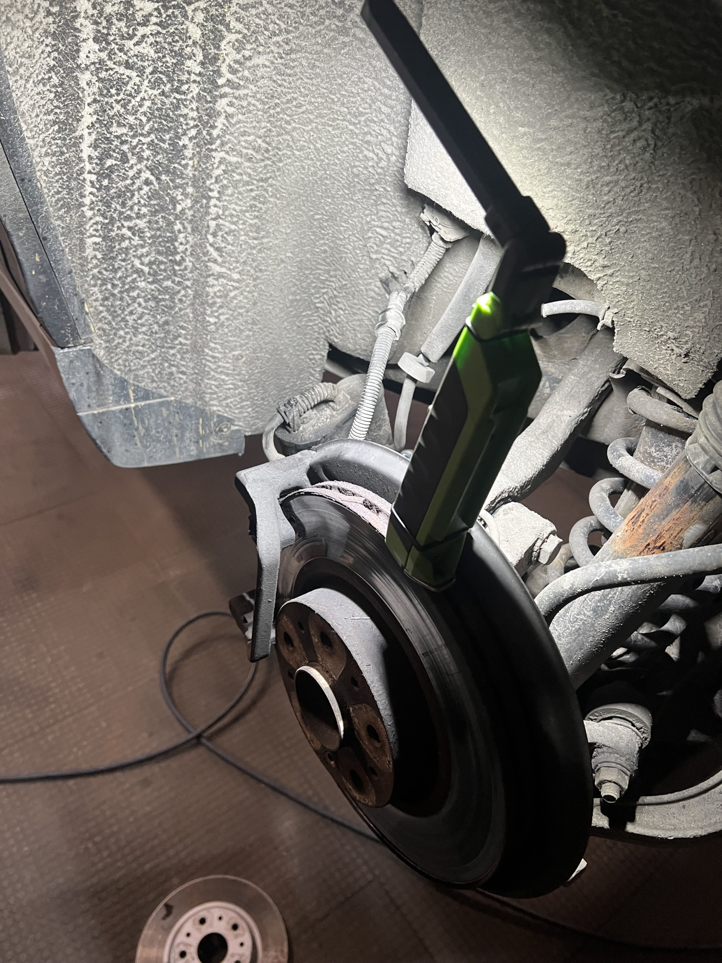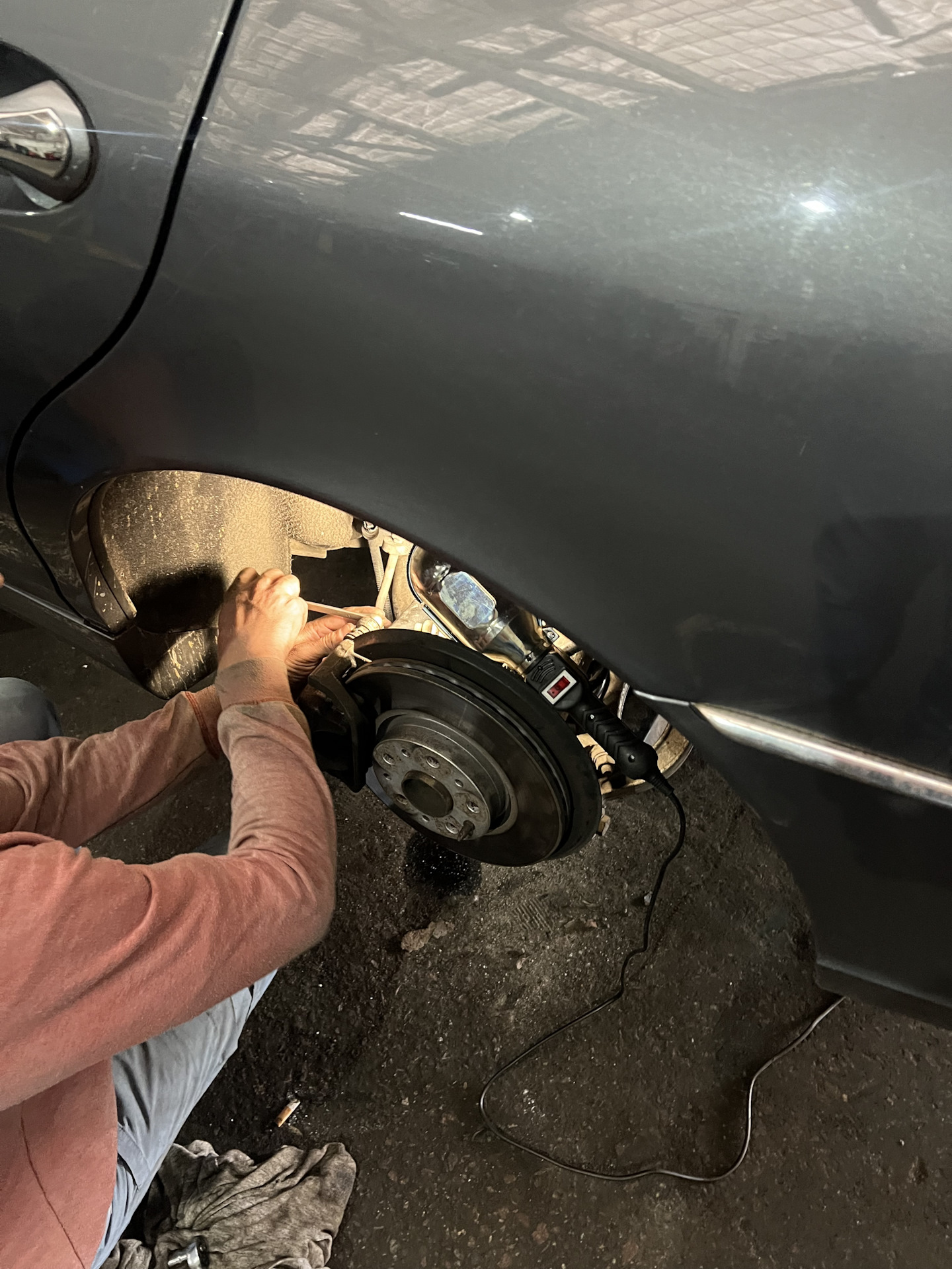 Начали их разбирать, свернули болты крепления электромоторчика, благо рядом был сварщик, с его помощью, их таки выкрутили. Раз полезли так глубоко, решил уже полностью обслужить тормоза. В отделе запчастей, говорю, что мол, пока машина висит на подъёмнике, пусть везут тормозные диски и колодки. Привезли передние тормозные диски и комплект из передних, да задних колодок. А вот задних тормозных дисков не было, нигде не было. Были только в Италии, «самка собаки», и ждать их, «гулящая женщина, аж две недели. Собрали перед, а затем и через пару недель зад.