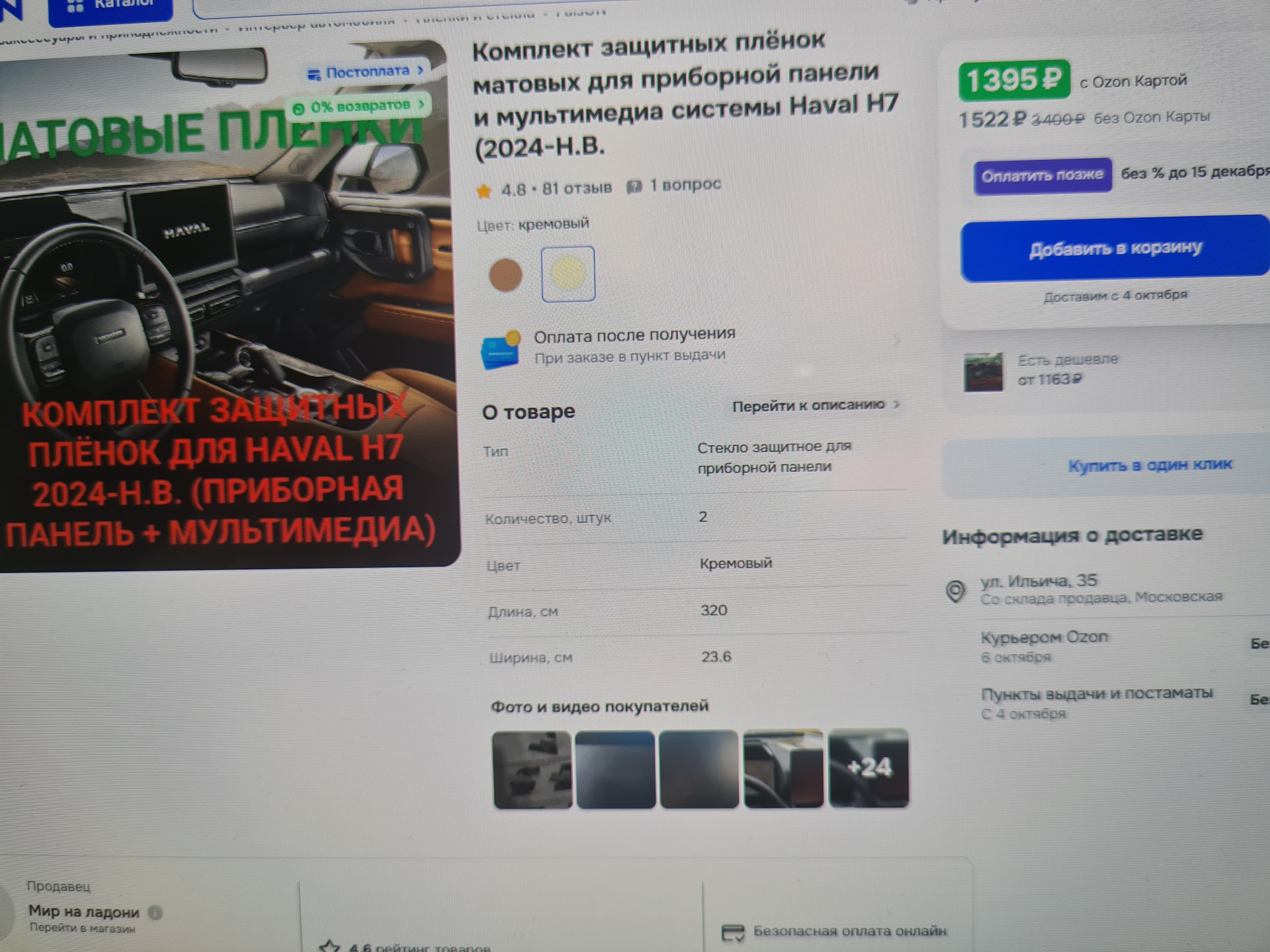 Заказал на озоне, пришел комплект на ГУ, ПП и козырек ПП.
