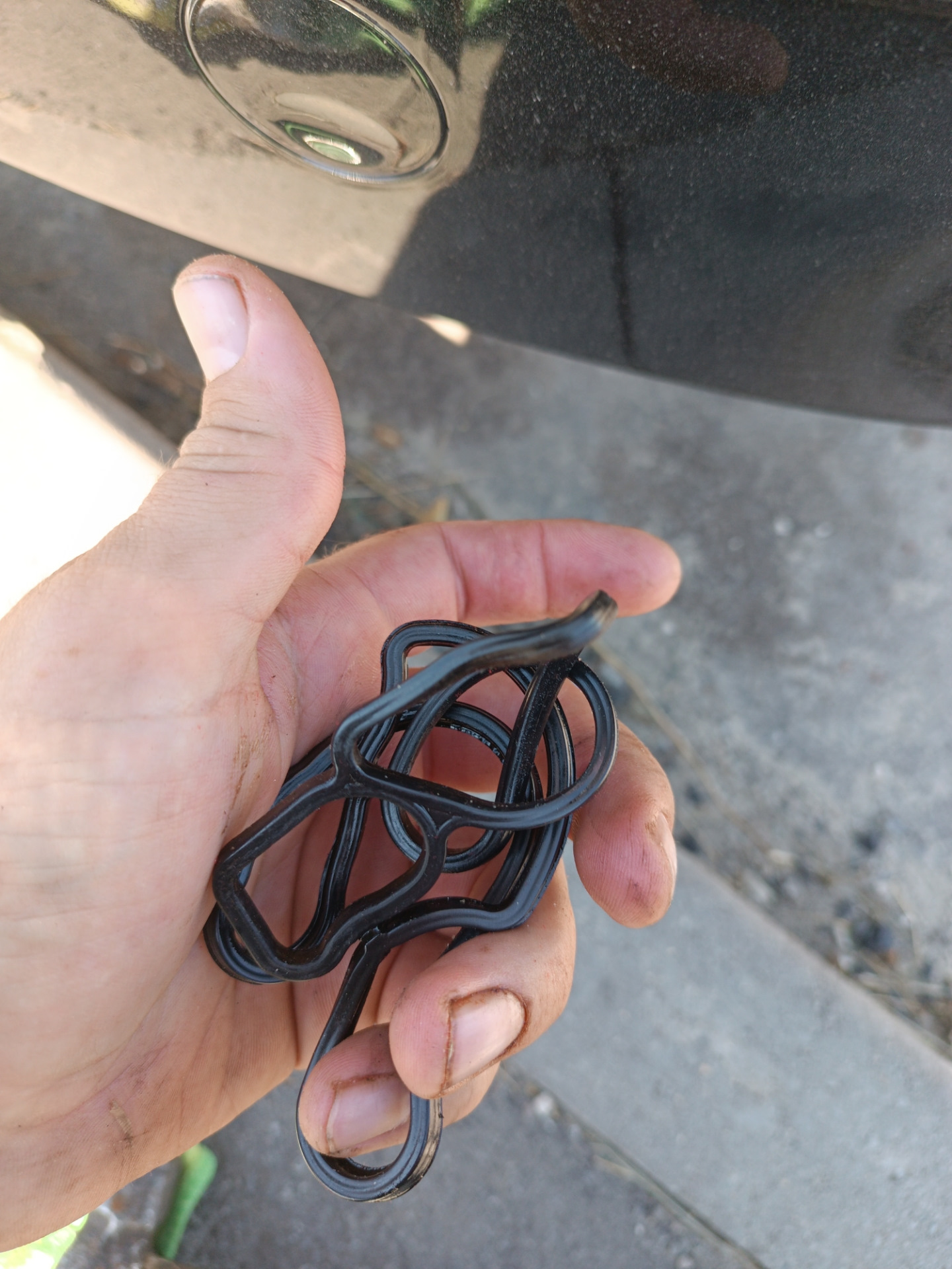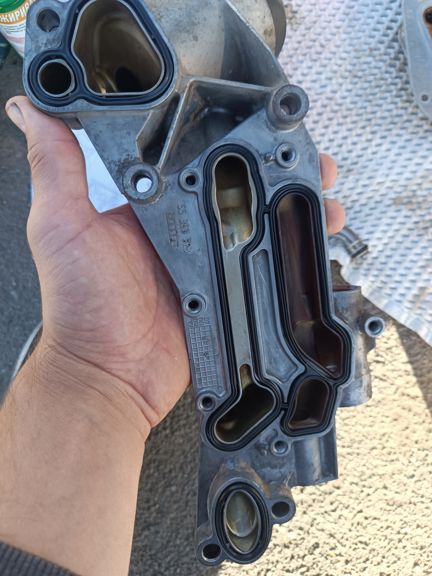 Привет читатели. Ради интереса посмотрел запись в журнале и оказалось что этой ситуацией занимался аш два года назад. Ну в общем стал пропадать очень резко антифриз, посмотрев на это всё с низу ааааавтомобиля оказалось что термостат потёк, видать та прокладка которая шла в комплекте с термостатом оказалась плохенькой. А на теплике висели маленькие капельки масла. Раз такое дело, решил заказать полностью комплект да обновить старые. Замечу что кроме пары капель масла замечено больше небыло, всё остальное было в норме. При разборе у меня от выпускного коллектора отвалились крепления термо экрана, сгорели, хорошо что рядом в гаражах находился сварщик и любезно за пятьсот рублей😀предложил приварить два болта(суки, ну и тарифы)))). Когда неспехом разобрал систему, посмотрел на состояние прокладок, они были все эластичные как ни странно, просели чуток, стояли оригинальные прокладки. Пока система была раздербанина, решил посмотреть на датчики распредвалов, просто видел как многие вытаскивали их и там было много отложений, у меня всё ровно так же! Ну помыл, почистил, уплотнительные колечки старые оставил, вроде несопливили и поставил обратно. Достал электромагнитные клапана, состояние нормальное, сеток боковых на них нет, тоже пролил жидкостью для карба и поставил обратно. Глянул попутно ГРМ, прокрутил по кругу ремень, трещен вроде нет, маркировка на ремне даже не стёрлась, пускай ещё походит. Ну что ж, помыли почистили то что грязное было да собираем обратно.