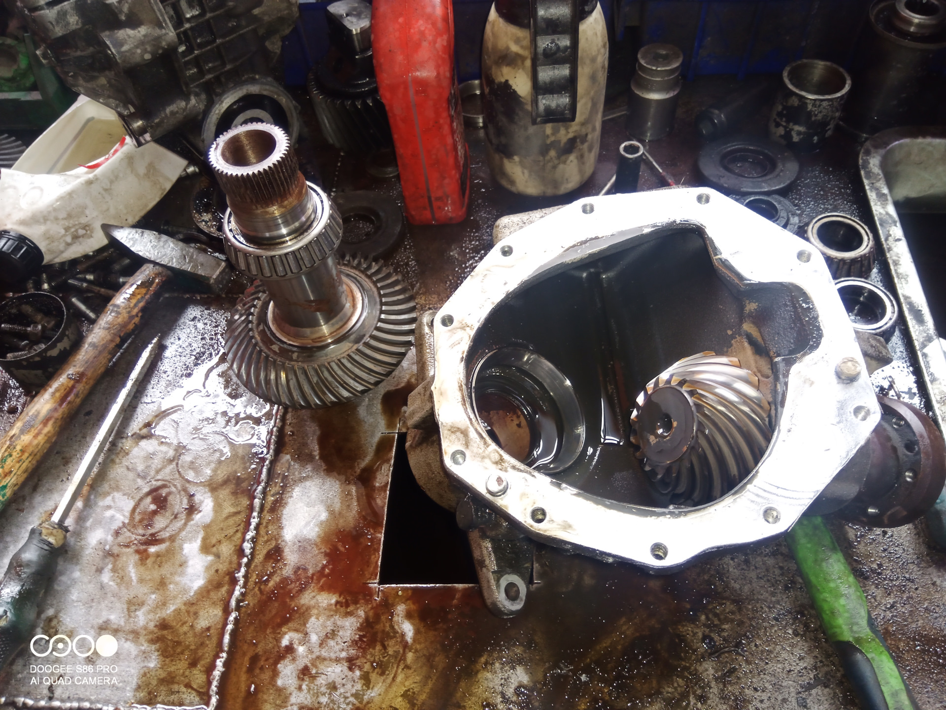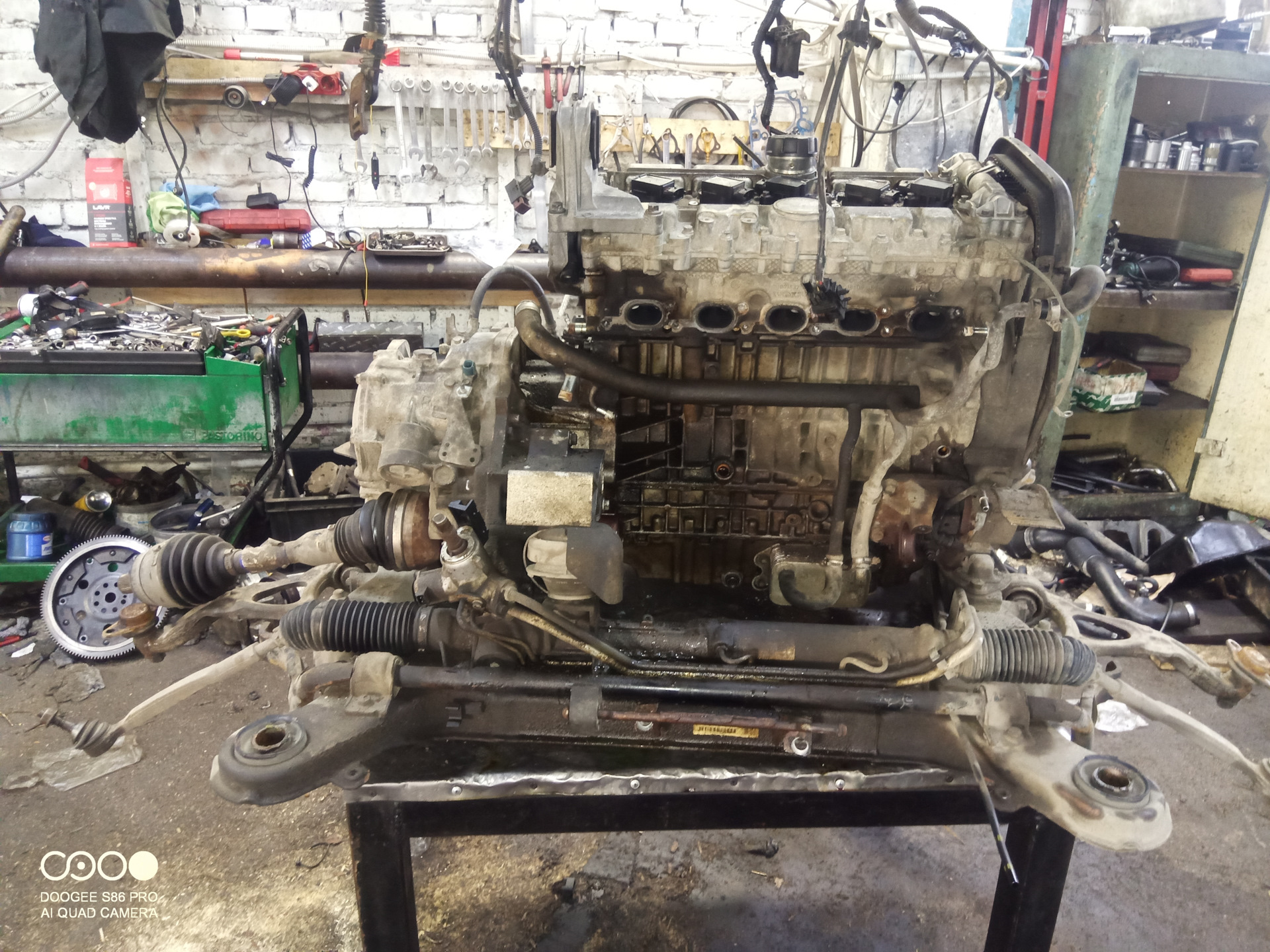 После долгих раздумий, было решено приобретать контрактный мотор и ставит его у продавцов (чтобы была хоть какая-то гарантия). Подобрали двигатель оперативно, а вот меняли его почти ТРИ недели и очень неаккуратно и раздолбайно. При этом приговорив угловой редуктор. Оказывается на нем практически не было подшипника правой полуоси, и, видимо, достаточно давно.