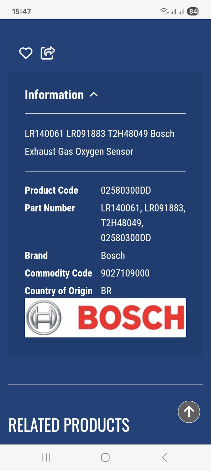 Многие грешат на автомобили JLR, есть у них детские болезни, но по многим параметрам авто приятно удивляет. На пробеге 176тыс. км первый раз выскочил Чек. Оказалось лямбда. Сначала подумал, что глюк, но повторное появление ошибок через 100км подтвердило диагноз. Выяснилось, что умерла последняя лямбда со стороны водителя. Расход увеличился, глушитель трясло, авто до замены поставил на прикол (уж очень не хотелось каты убить). Ориги почти нет, а те, что были — висели по 1000$ (продавцы без совести при себестоимости в Европе около 300$). Аналогов у нас в наличии нет, а универсальные по опыту — с задачей не справляются. Европейские сайты выдавали Bosch инженерный номер 0258030043 (это оригинал). В результате под ним производились лямбды Bosch 02580300DD и 025803001P. Выбор пал на последнюю. Приобретена, правда в Европе и за 95$ (у нас она была под заказ и за 200$). При замене выяснилось, что все лямбды еще заводские. Заодно проверили подвеску — все в норме.
