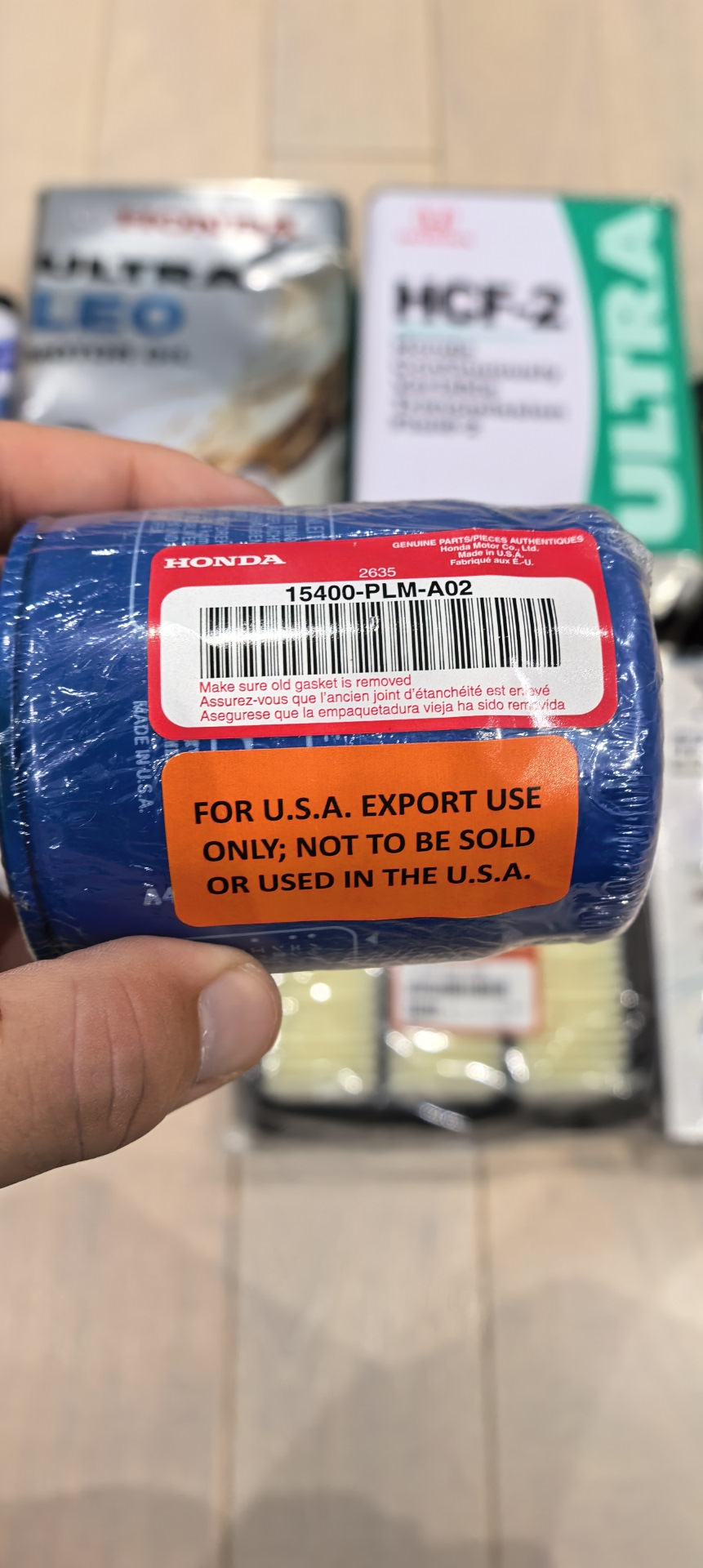 Мой скромный комплект для ТО (покупалось все на hondaworld, автодок и MYGT.ru):