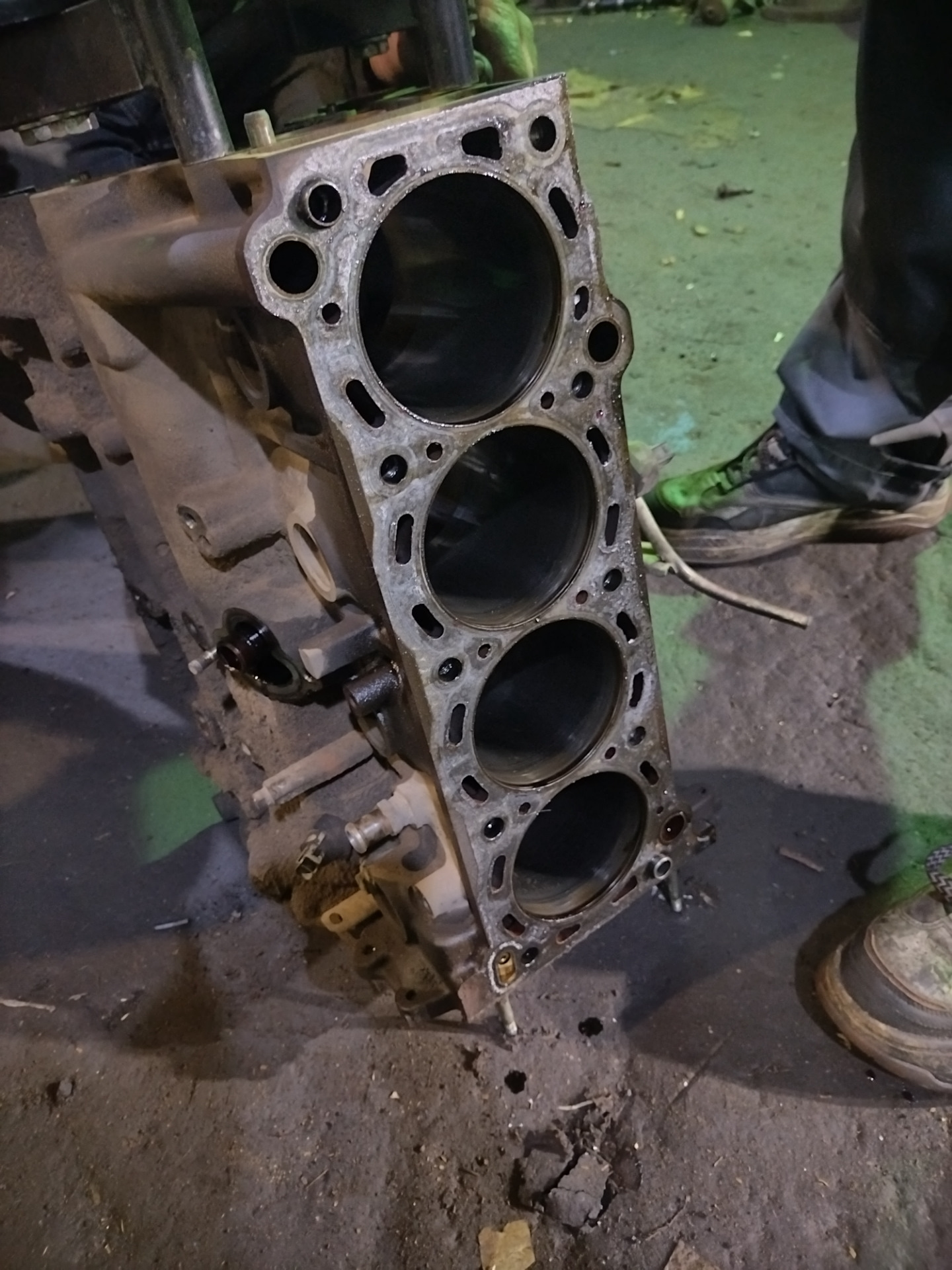 Договорились с ним встаю на ремонт 1.09.25г пригоняю машину и через 2 дня звонок, приезжай мы разобрали ДВС. Приехав на сто, я увидел печальную картину, на блоке в цилиндрах хона не было совсем набито зеркало, при установке новых колец зазор не соответствовал книге. Это расточка блока. Хорошо что шатунные и коренные в стандарте. Заказываю поршня тейкен и кольца нпр, жду когда всё это приходит прошу друга с работы и мы везём все это в гбц профи. Гбц тоже туда везем на опрессовку и шлифовку. Парни мастера своего дела. Станки с ЧПУ камни мелкой градации. Через день мне позвонили с гбц профи и приговорили мою гбц 😬 у меня был шок. Трещина где впускной клапан камера и уход ее в рубашку охлаждения. (При разборе прокладка под головой была нормальная). Пришлось заказывать полностью в сборе гбц Китай с Иркутска.