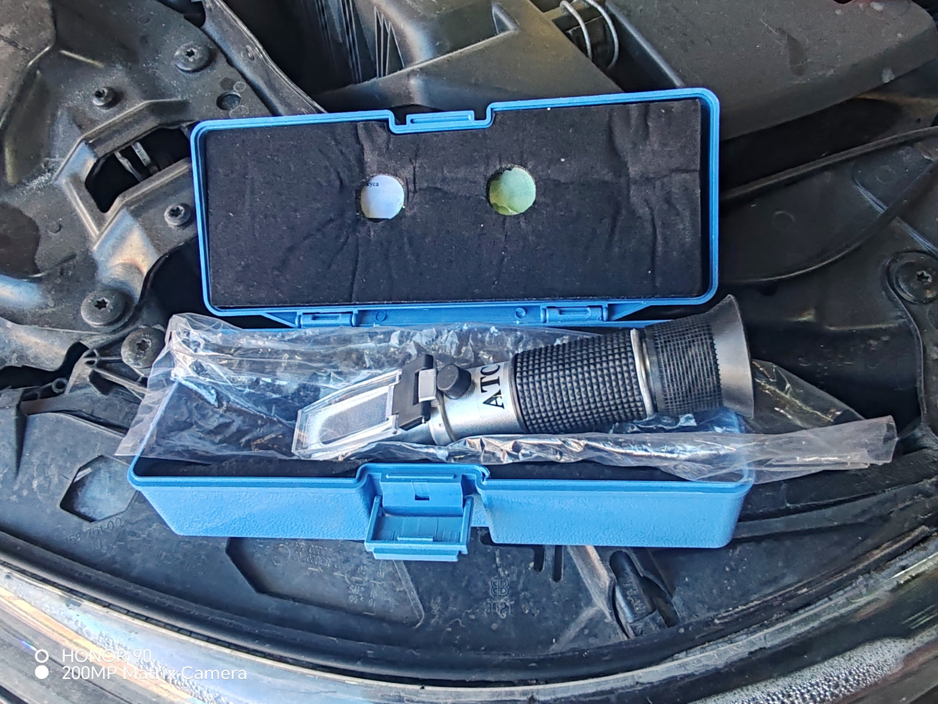 Далее бодяжим антифриз с водой 1:1 и проводим замер чудо прибором.