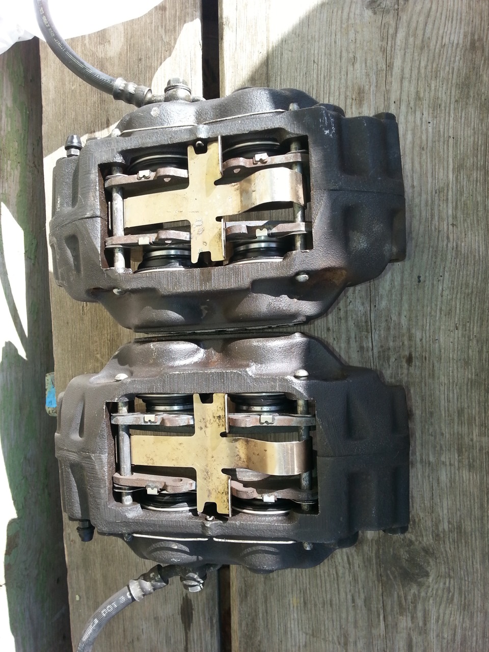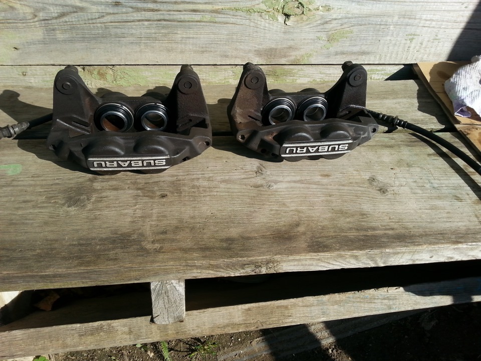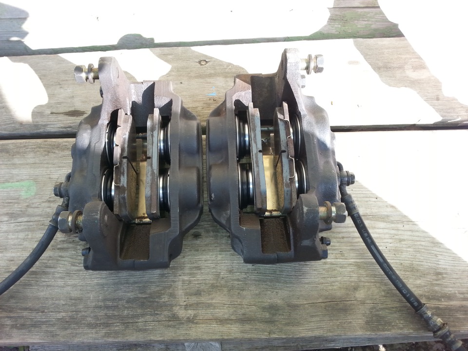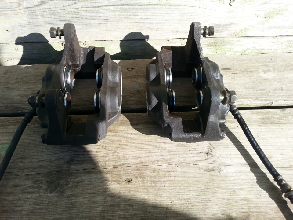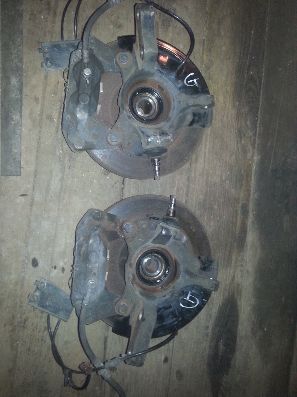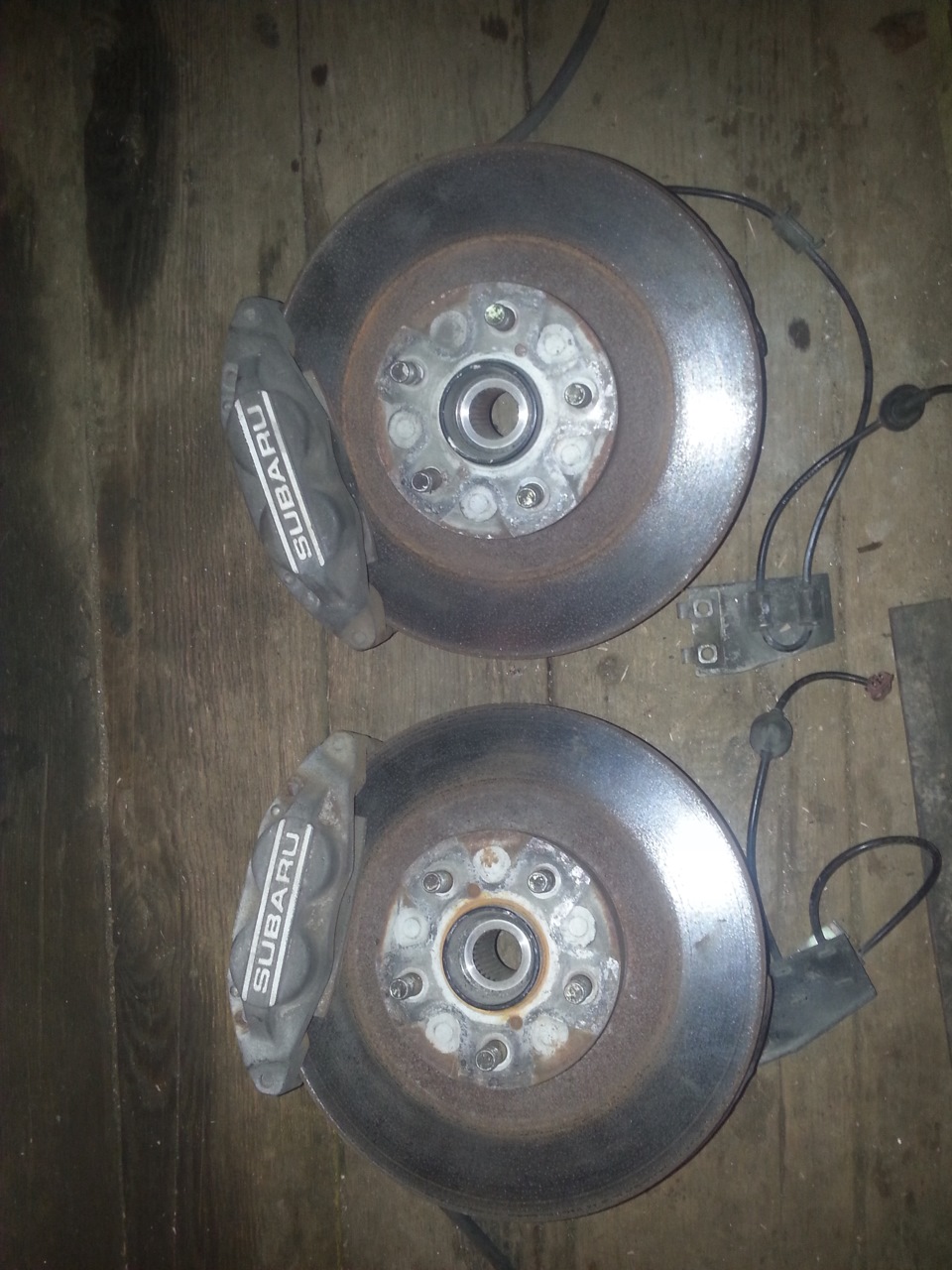 Наконец то дошли руки до установки тормозилок. Зимой взял тормозные суппорта в сборе со ступицей от SG5. Рассказывать особо нечего. Только пришлось сколхозить крепежки для крепления новых тормозных шлангов к стойке.