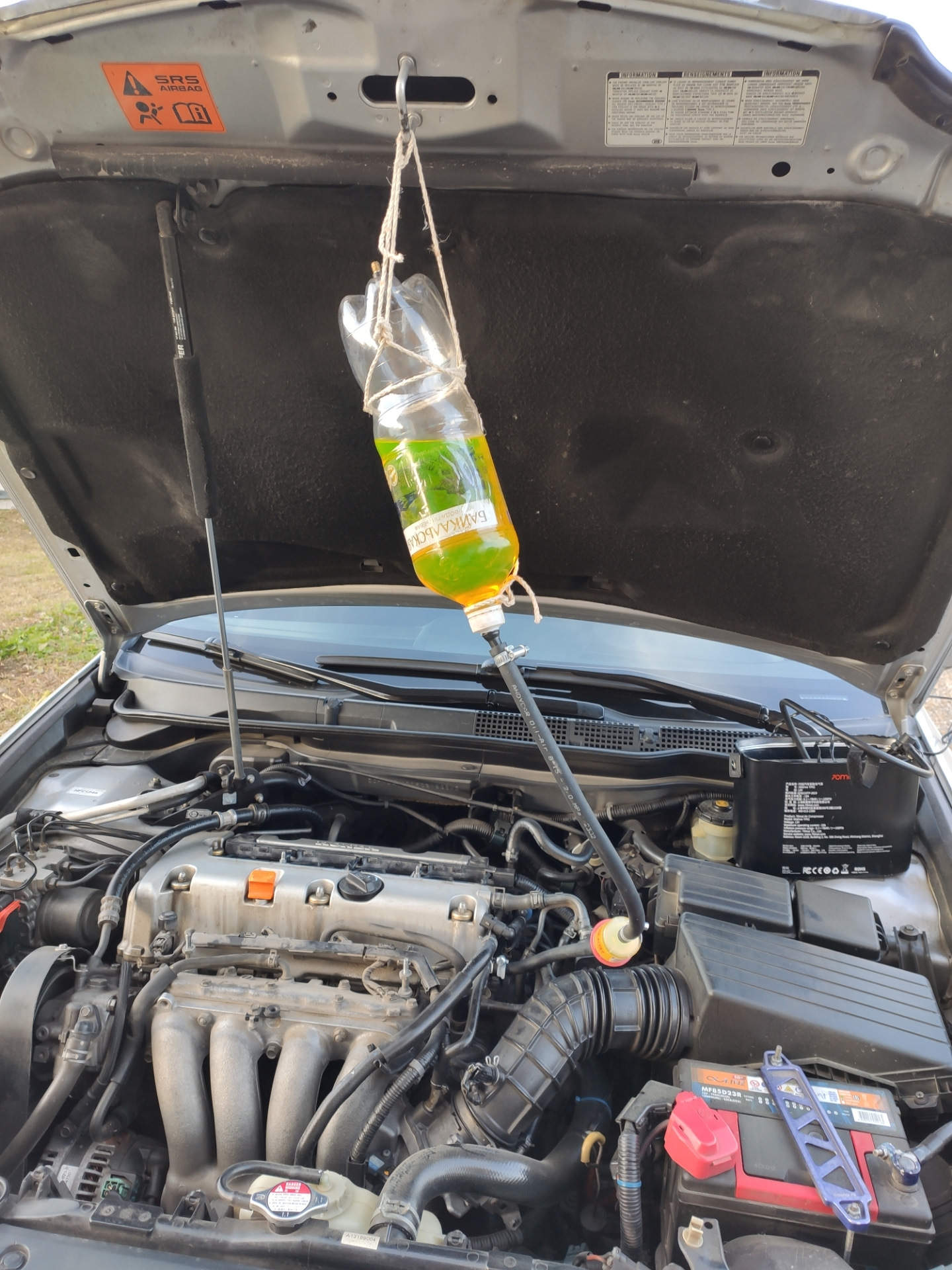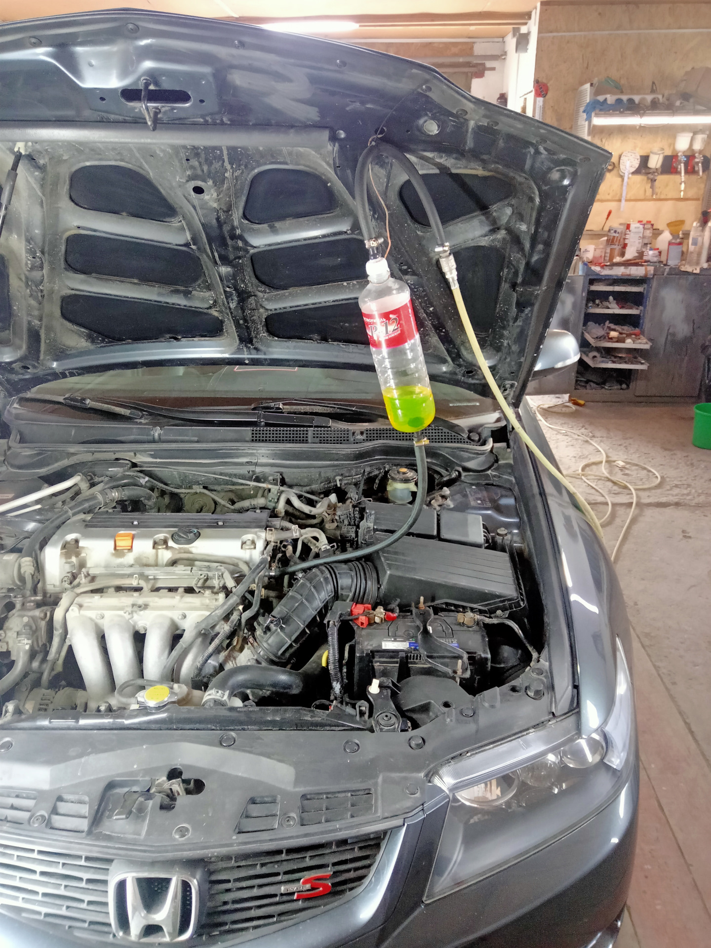 С покупки аккорда, а это 2018 год, не разу не мылись топливные форсунки. Почитал как это делается и стал собирать потихоньку все составляющие. Необходима бутылка, взял 1,5 Байкальской воды, два соска колёсных, шланг 1,5 метра и фильтр грубой отчистки. Ну и купил промывку Lavr. Перед промывкой поменял свечи зажигания на старые, хотя написанно по инструкции, что можно и не менять свечи, но решил не рисковать. Вонь конечно стояла знатная, когда работала промывка, кстати двигатель на промывке работал намного тише чем на бензине. По ощущениям машина стала более отзывчивая и расход упал маленько, но прям супер какой то разницы не заметил, но как профилактику буду делать раз в год.