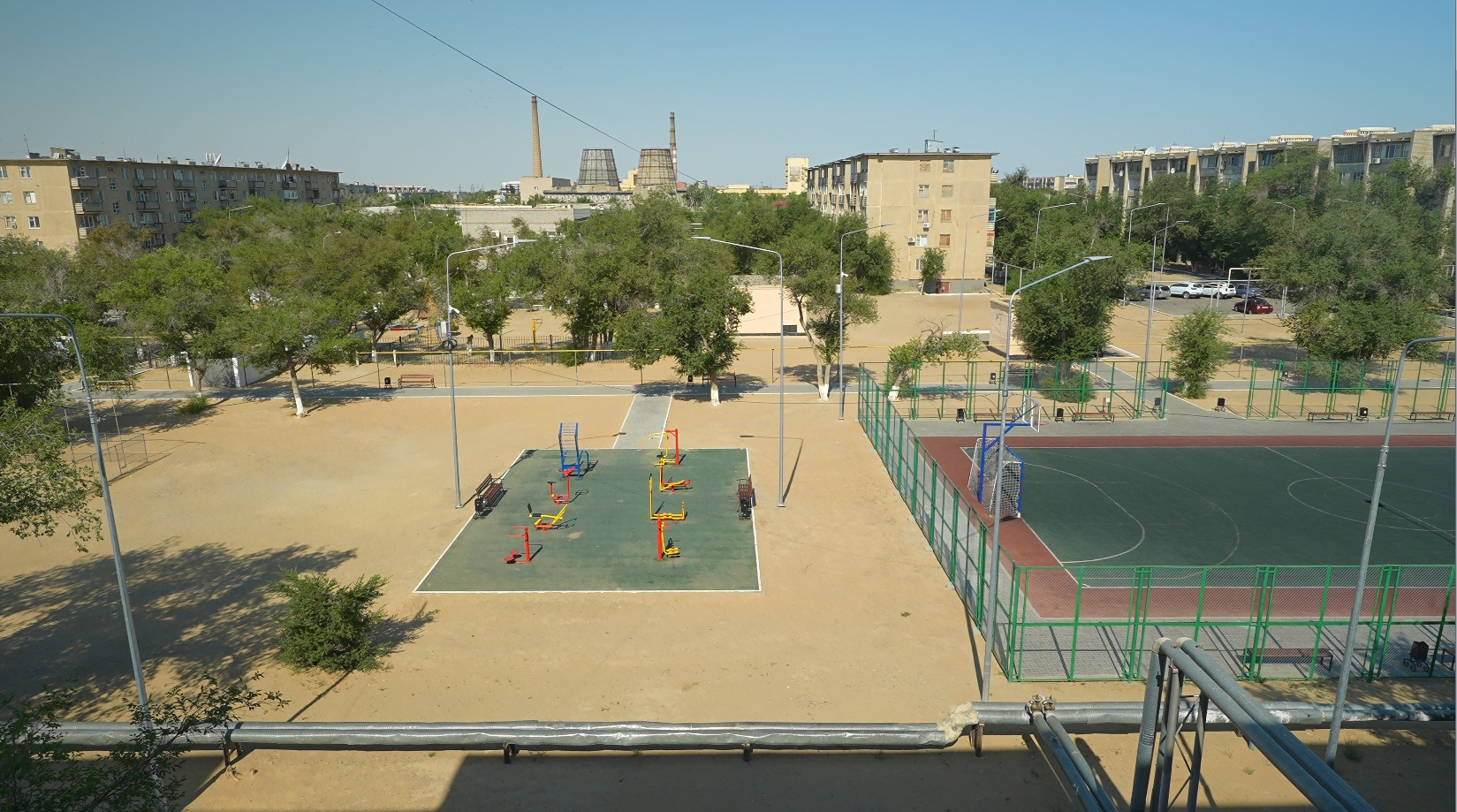 Есть парки и скверы. На территории города расположены центры подготовки космонавтов, но это закрытая территория. Существует своя набережная реки Сырдарья и большой православный храм. Как раз на берегу Сырдарьи сделаны несколько бассейнов, душевые и раздевалки, все совершенно бесплатно.