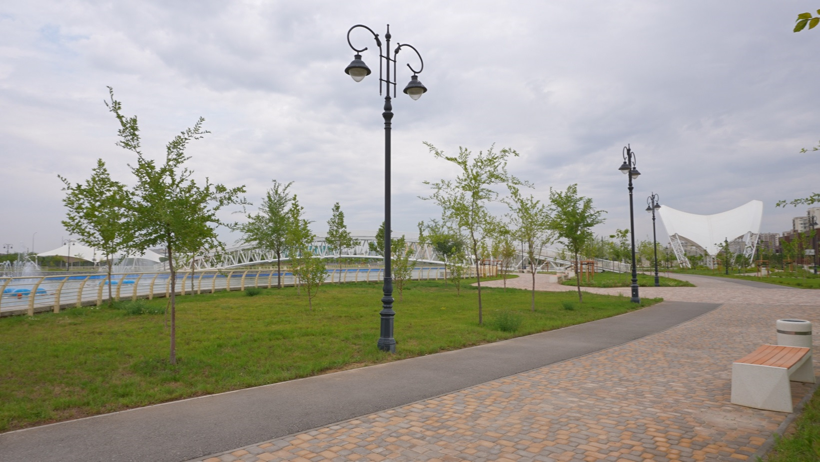 Город красивый, с широкими улицами, красивыми зданиями, большое количество общественных пространств. Поразил их масштаб, в будний день мы зашли в парк, с фонтанами, скамейками, искусственным прудом, детскими площадками. На вид по размеру он пару футбольных полей. И в нем ни одного человека!