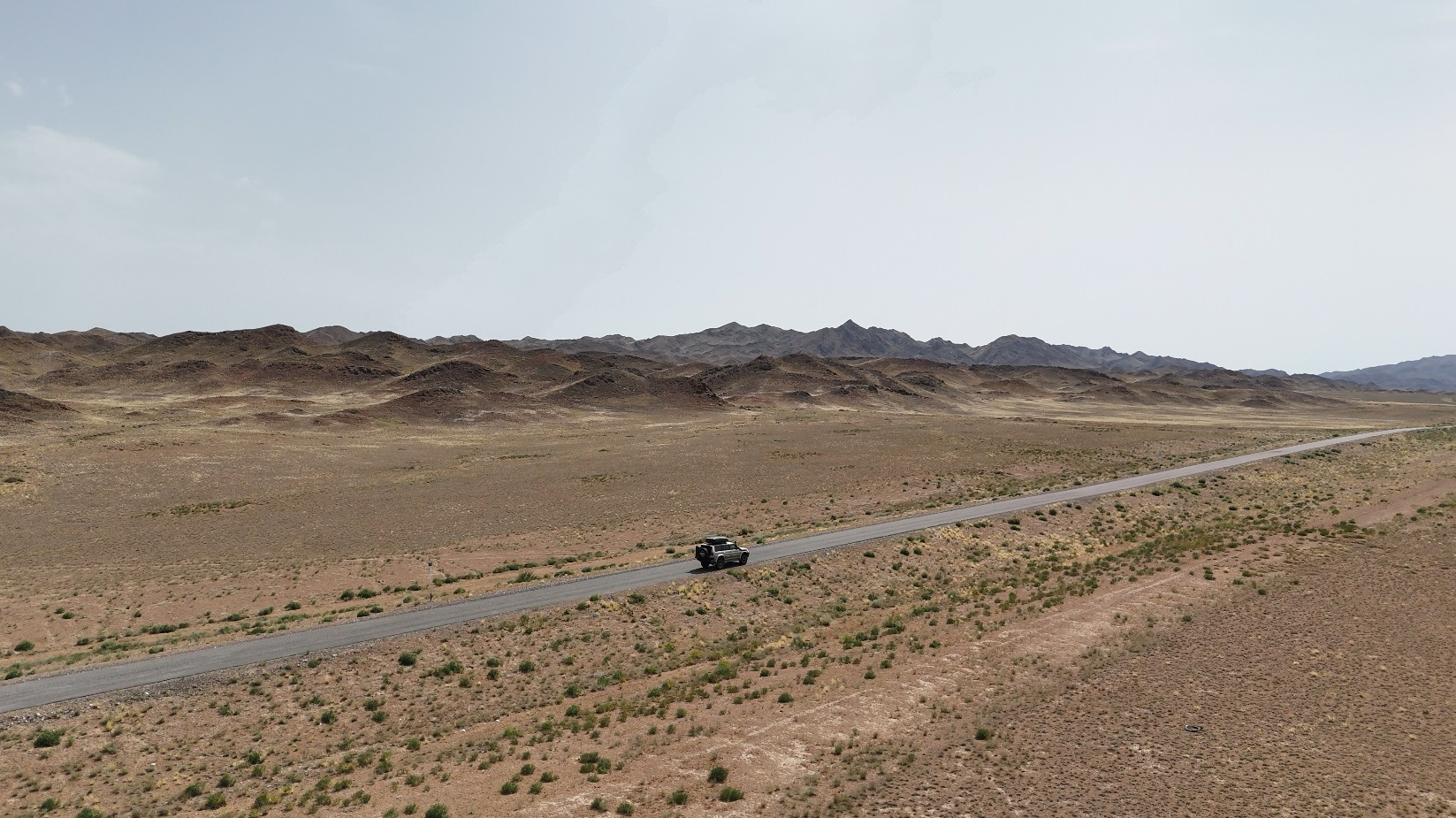 В прошлой части мы двинулись от Хоргоса в сторону нацпарка Алтын-Эмель. Дорога на момент поездки была в ремонте, частично уже сделана, поэтому ехать было приятно. Местами дорога пересекает очень красивые места. Места какой то вулканической наплавленности, очень похожи на Бектау-Ата. Но ветер такой силы, что запустить дрона не получилось.