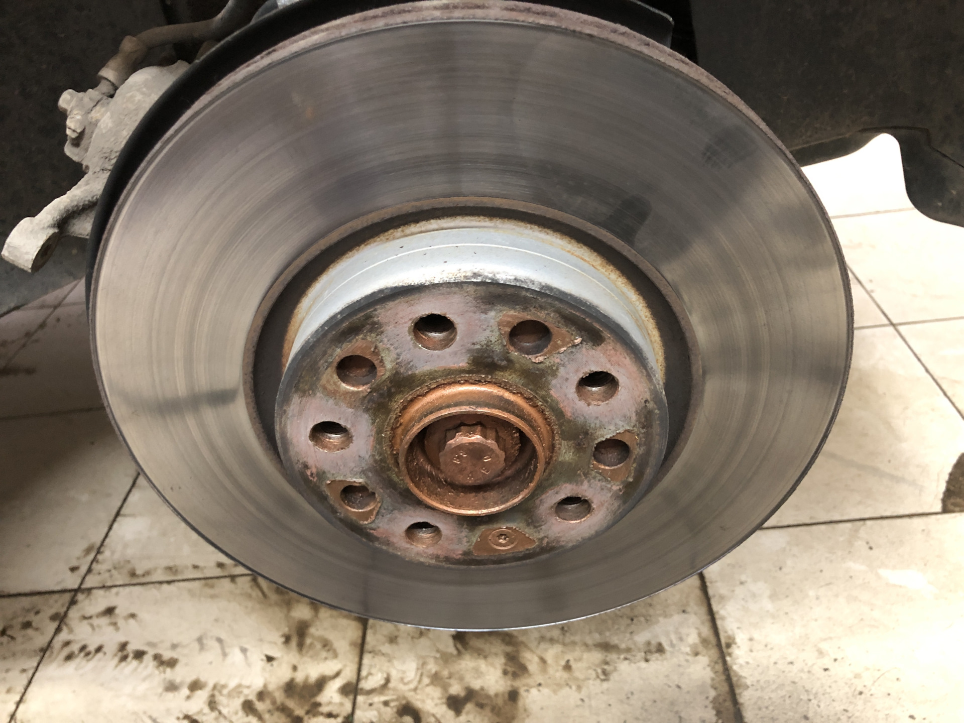 Настала пора установки дисков )) ставлю, прикручиваю, устанавливаю колодки и ни чего не понимаю ))) я купил диски меньшего размера ))? Как так я столько перечитал про эти пассаты, оказывается что задние у меня не 282х12, а 300х12 вот это поворот, что делать, опять все разбираю и в процессе понимаю, что диски снимаются без снятия скобы, похвалил инженеров Vag, хотя первый раз я все снимал, чтоб конечно все почистить от налета, ржавчины и грязи.