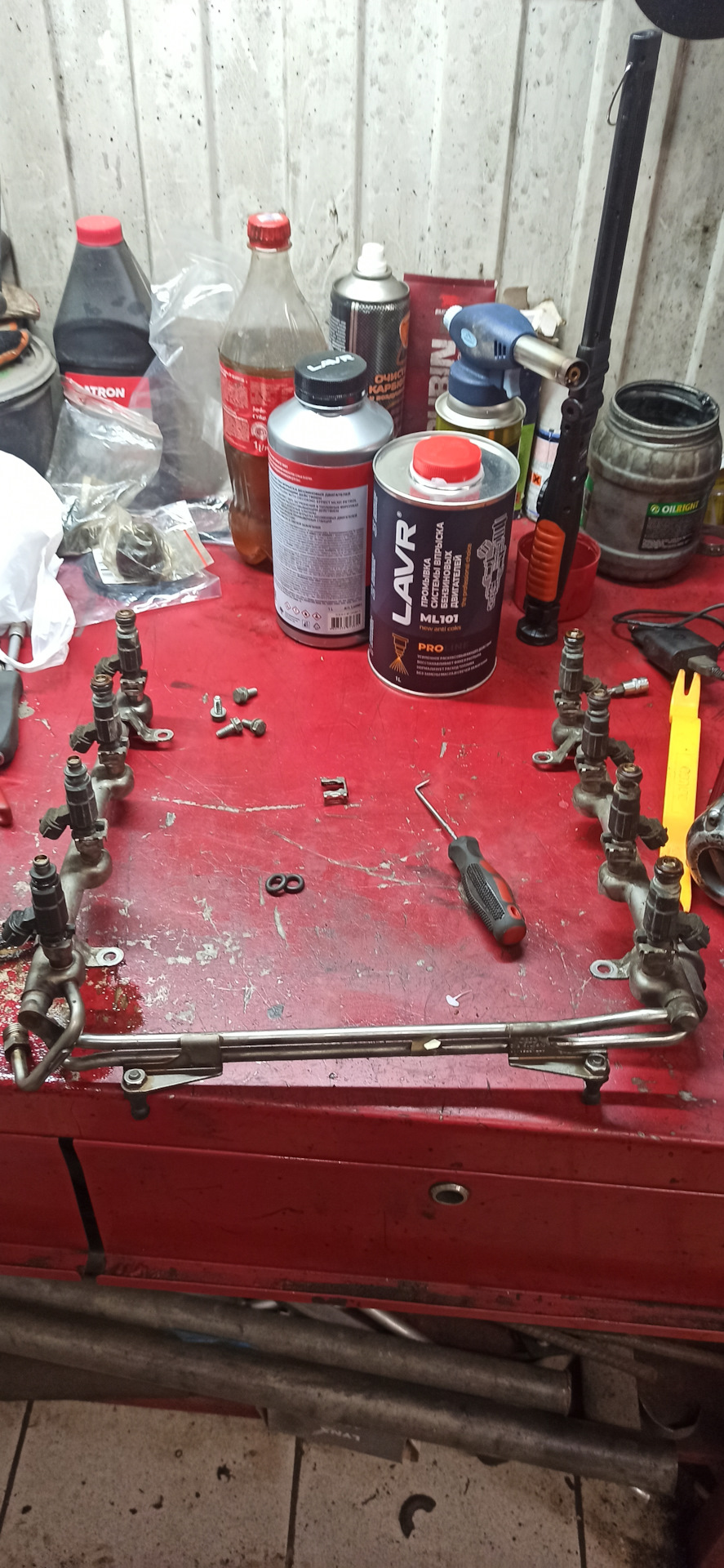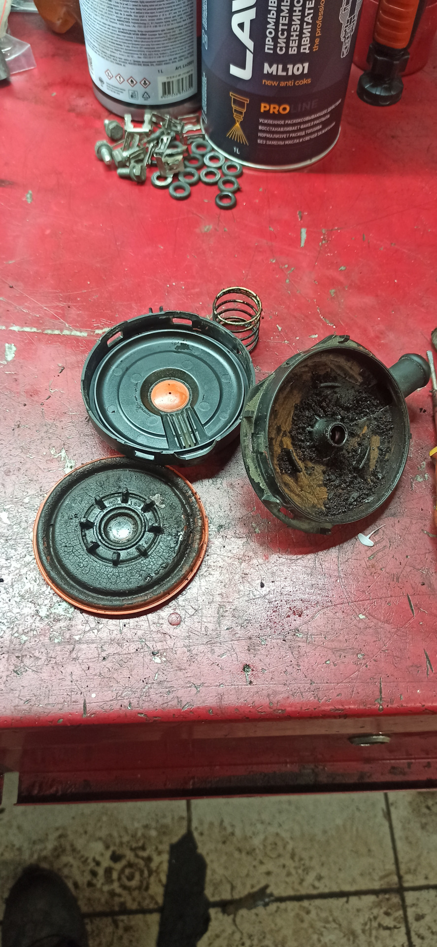 Приветствую. Ещё перед отпуском заменил масло в ДВС и промыл форсунки в профилактических целях. Так как масло меняю раз в 5 тыс. Скоро опять менять т.к. в отпуск съездил уже 4000 накатал😁. Форсунки сначала снял и промыл в ультразвуковой ванне, далее все собрал обратно разумеется с новыми колечками и ещё промыл лавром чтобы ещё помимо форсунок помыть клапана и поршня, лавра ушло 2 литра. Так же попутно поменял мембрану в клапане ВКГ. Всем ровных дорог и полных баков.