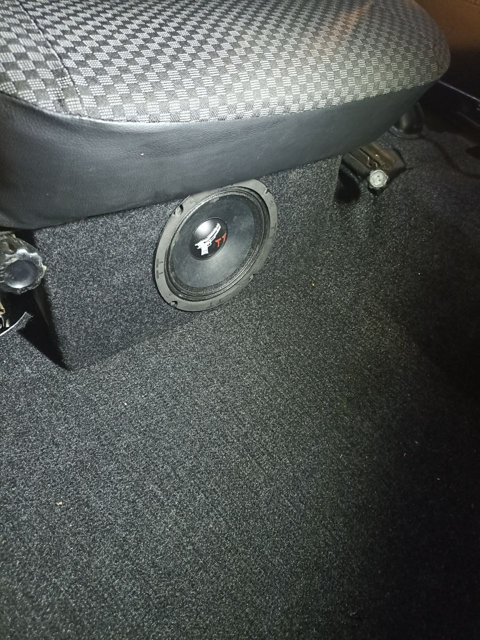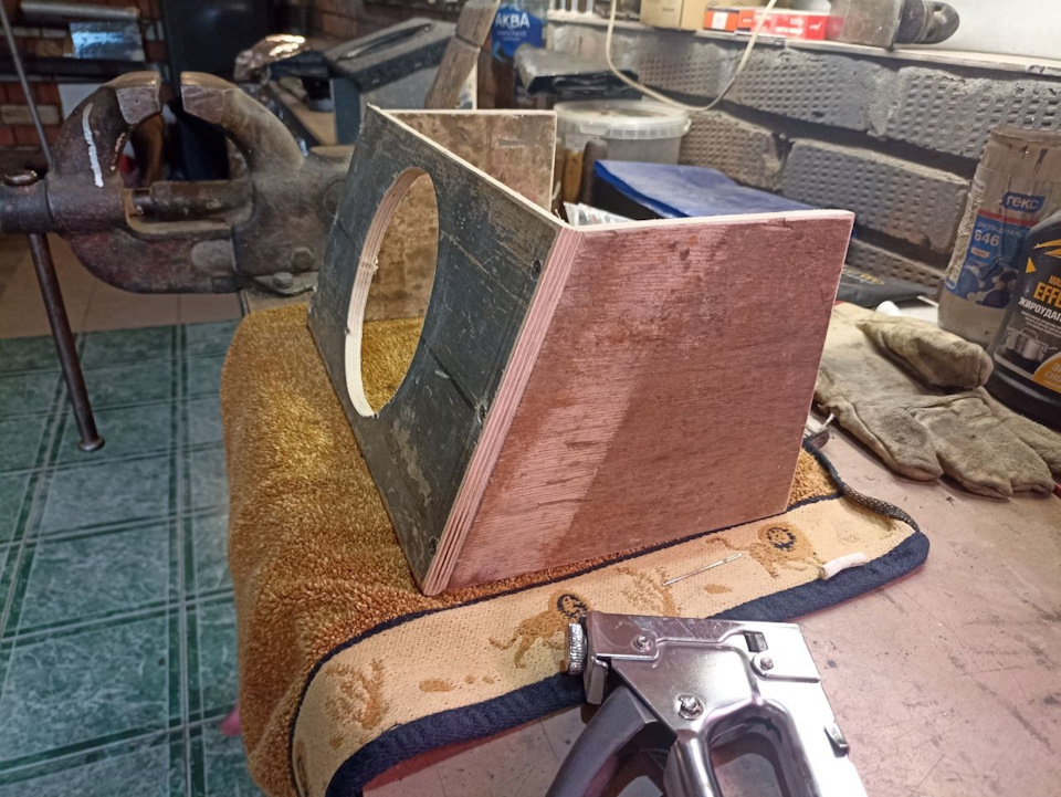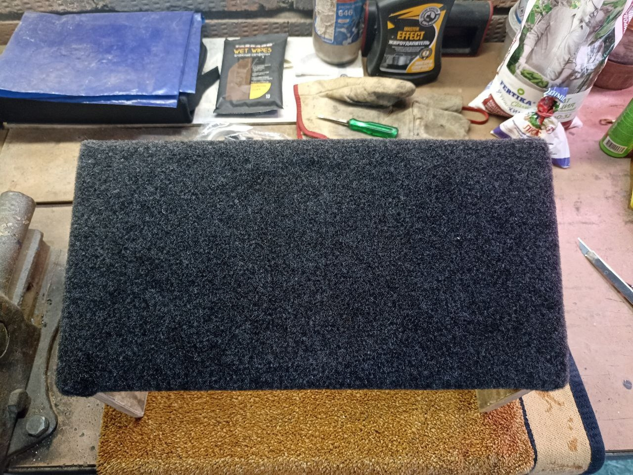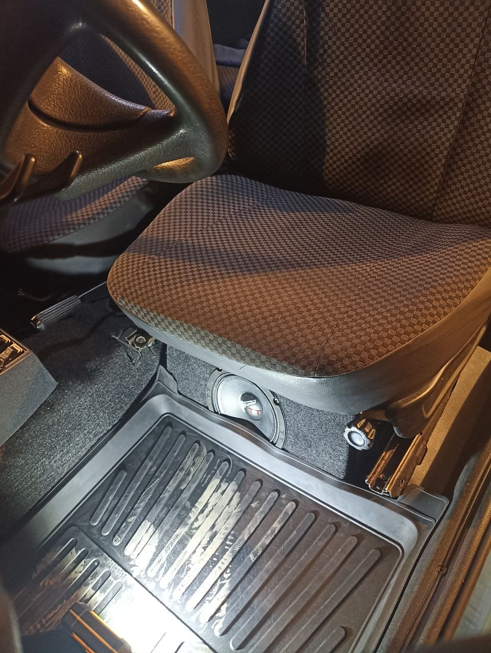 Решил установить передние динамики под передними сиденьями. Для этого изготовил подобие подиумов из фанеры.