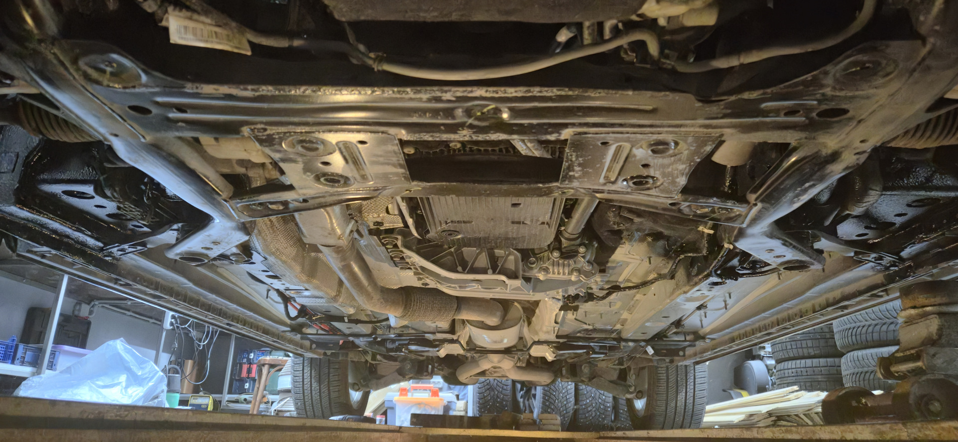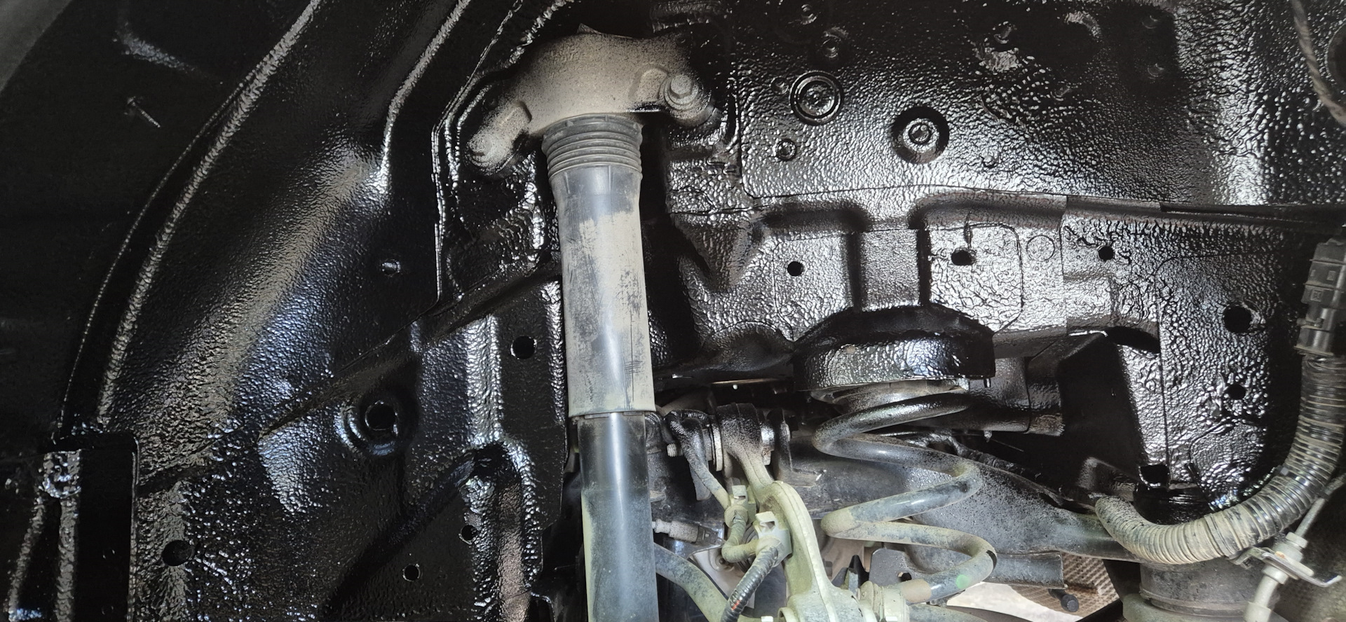 Что бы не испытывать судьбу, решил заморочиться с обработкой днища, пока оно находится в девственном состоянии). Ко всему прочему 478 состав считается хоть и номинально, но шумоизоляцией. Делать решил сам. Купил 6 балонов Dinitlol 478 и один баллон для скрытых полостей ML. Совместил это все с установкой ПТФ. Делал неспешно (арку за вечер, далее давал высыхать и так далее. В 3 приема обрабатываю днище. Финалом было заливка ML в лонжероны.