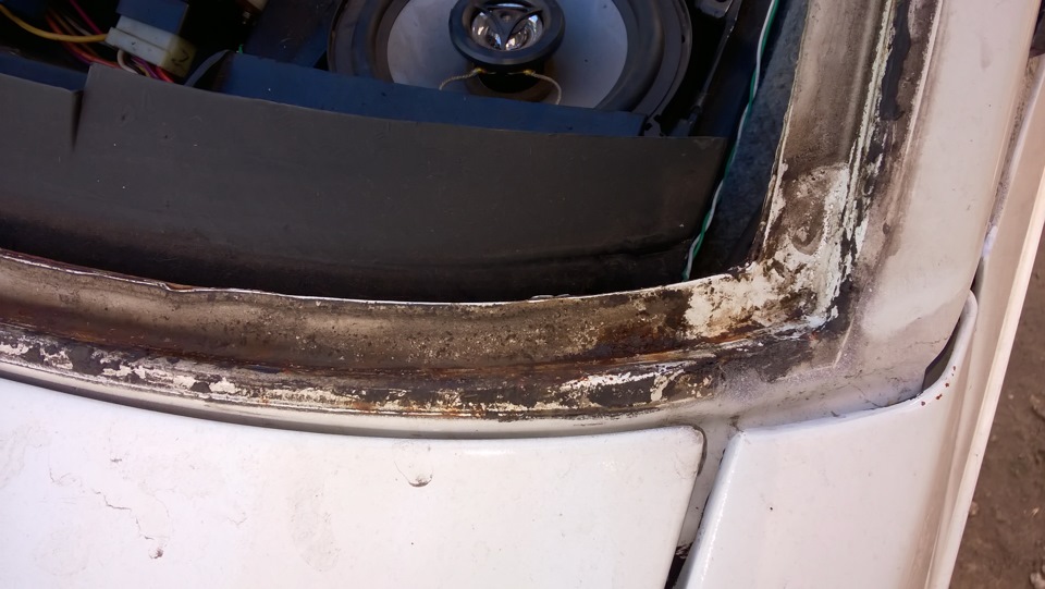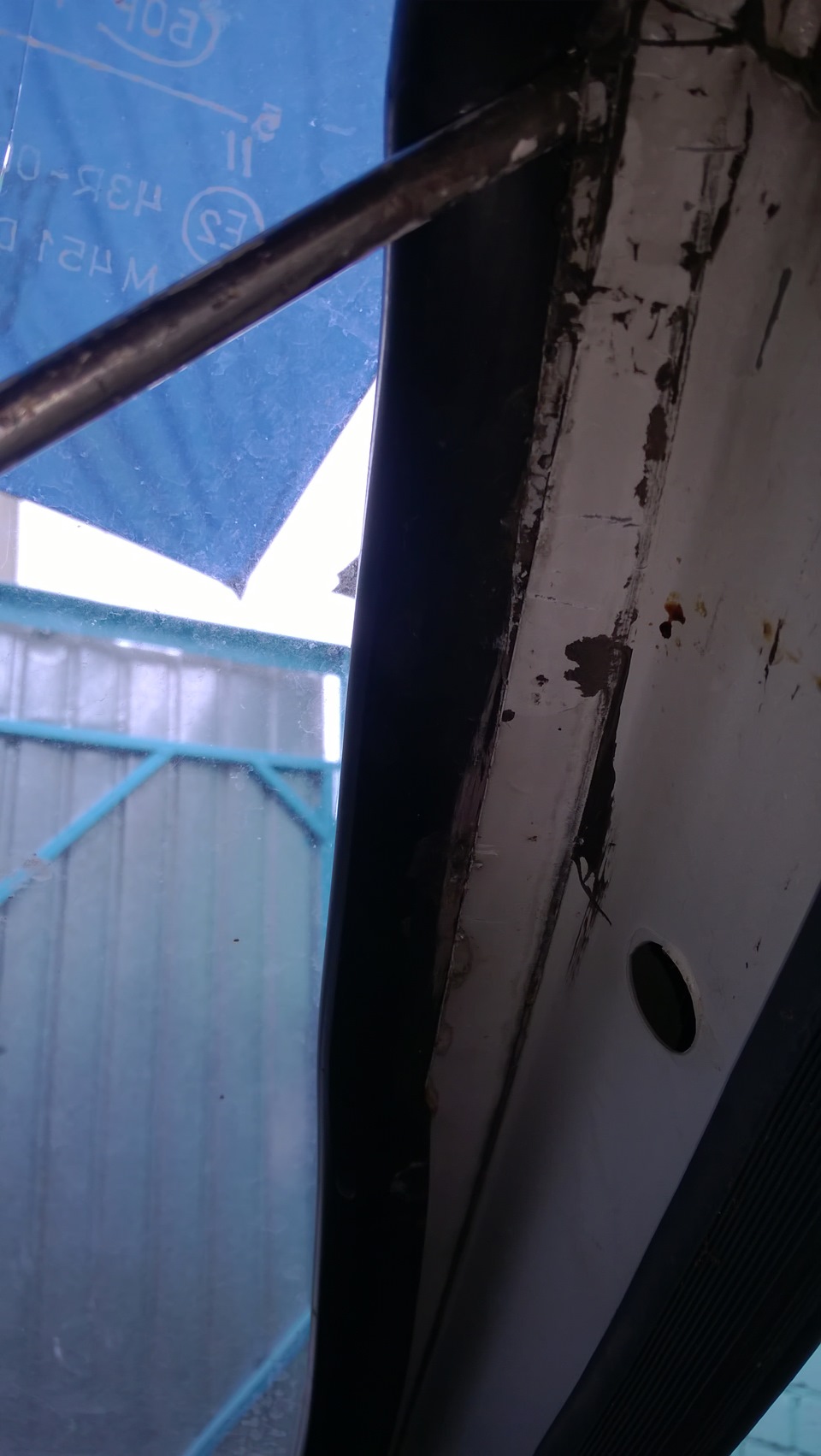 Все это дело зачищаем, удаляем остатки старого герметика(В моем случае Body 640), обрабатываем преобразователем, грунтуем, красим и забываем на ночь!