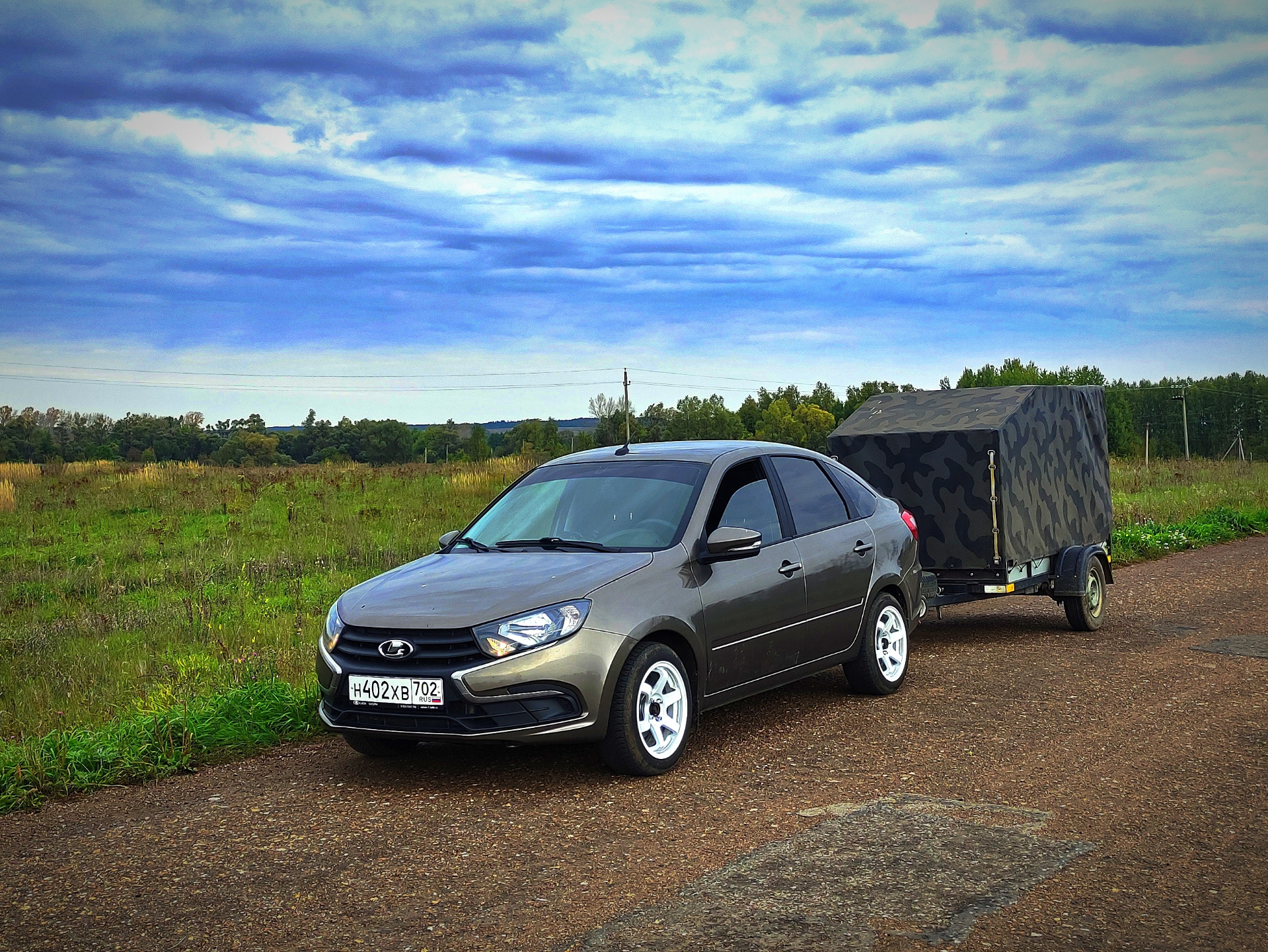 Немного доработал прицеп под гранту. Покупал его для шнивы, поэтому тент взял самый высокий, колеса поставил большого размера. Но Гранте тяжело такой парус тащить. Поэтому перешёл на 13е колеса, переставил ось над рессорами, занизил каркас тента на 12см. Заодно и высота погрузки стала меньше, что очень удобно.
