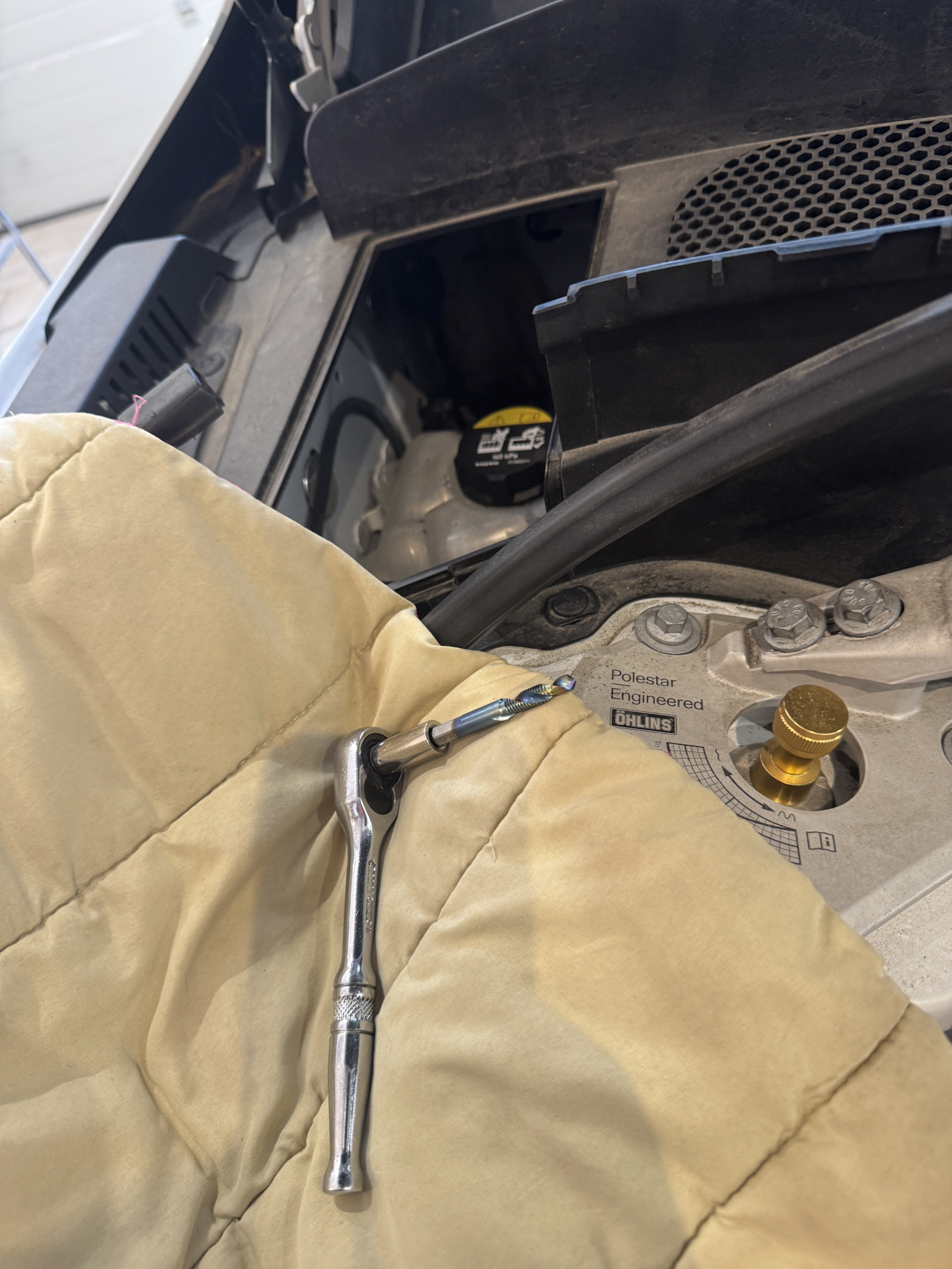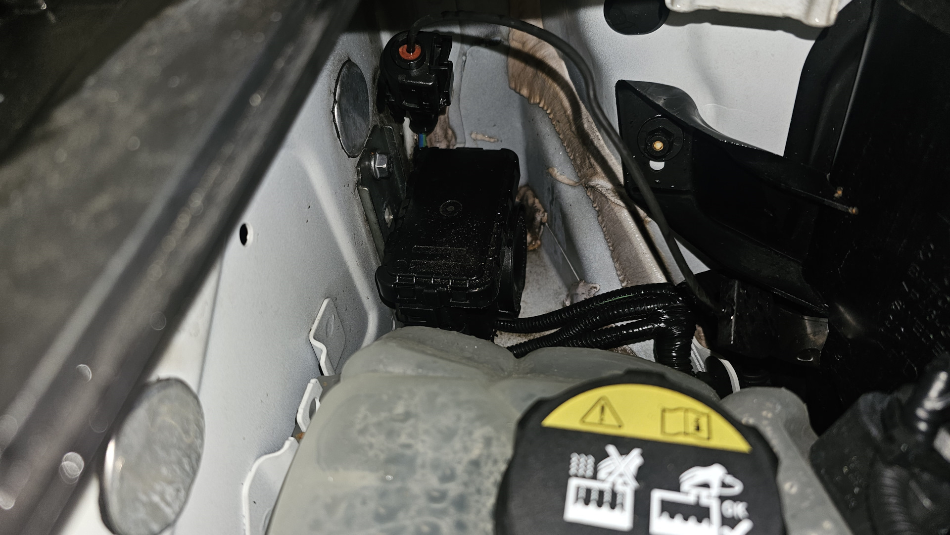 А дальше все относительно просто, под капотом необходимо нарезать резьбу в закладной, прикрутить болтиком блок и воткнуть любезно тут закрепленный разъем.