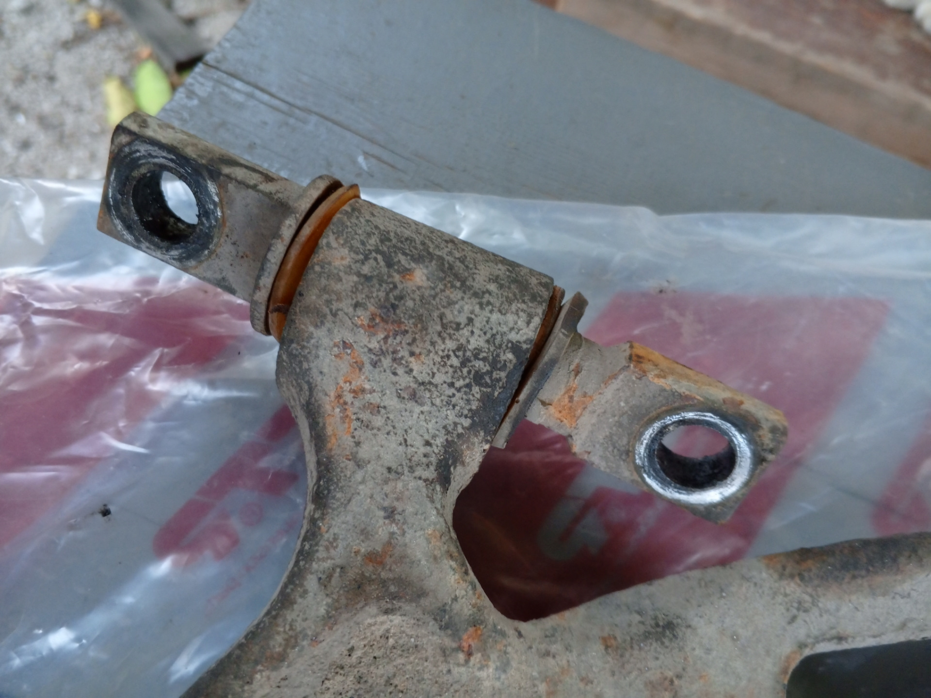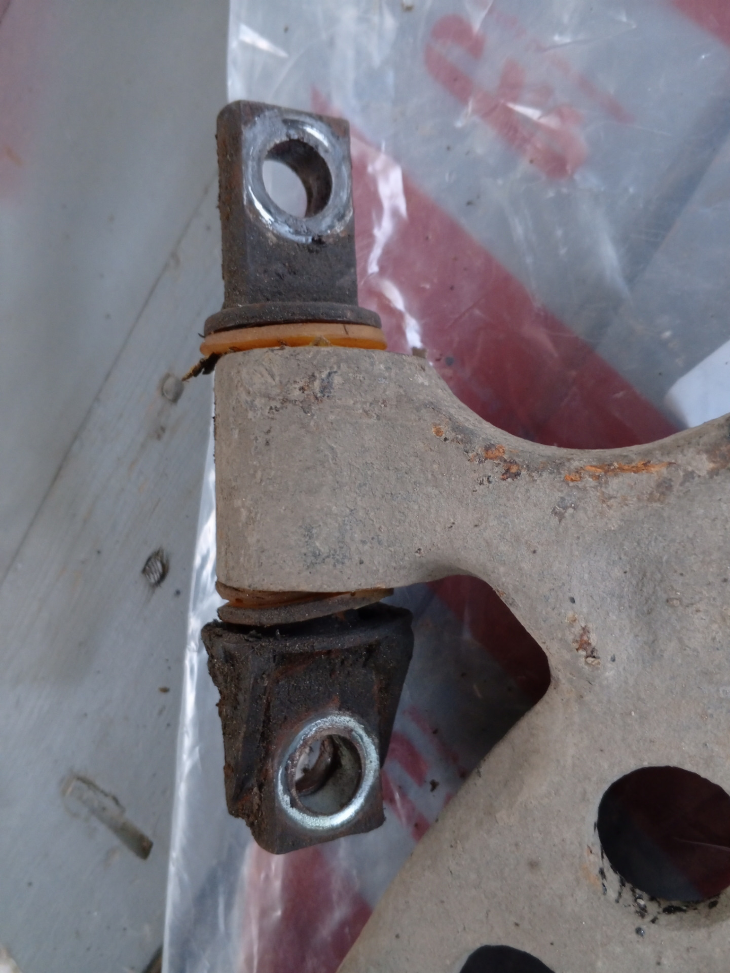 Прошлый хозяин не знаю на что надеялся, но установил полиуретан в рычаги, пряник тоже был полиуретановый, раздавило его в хлам.