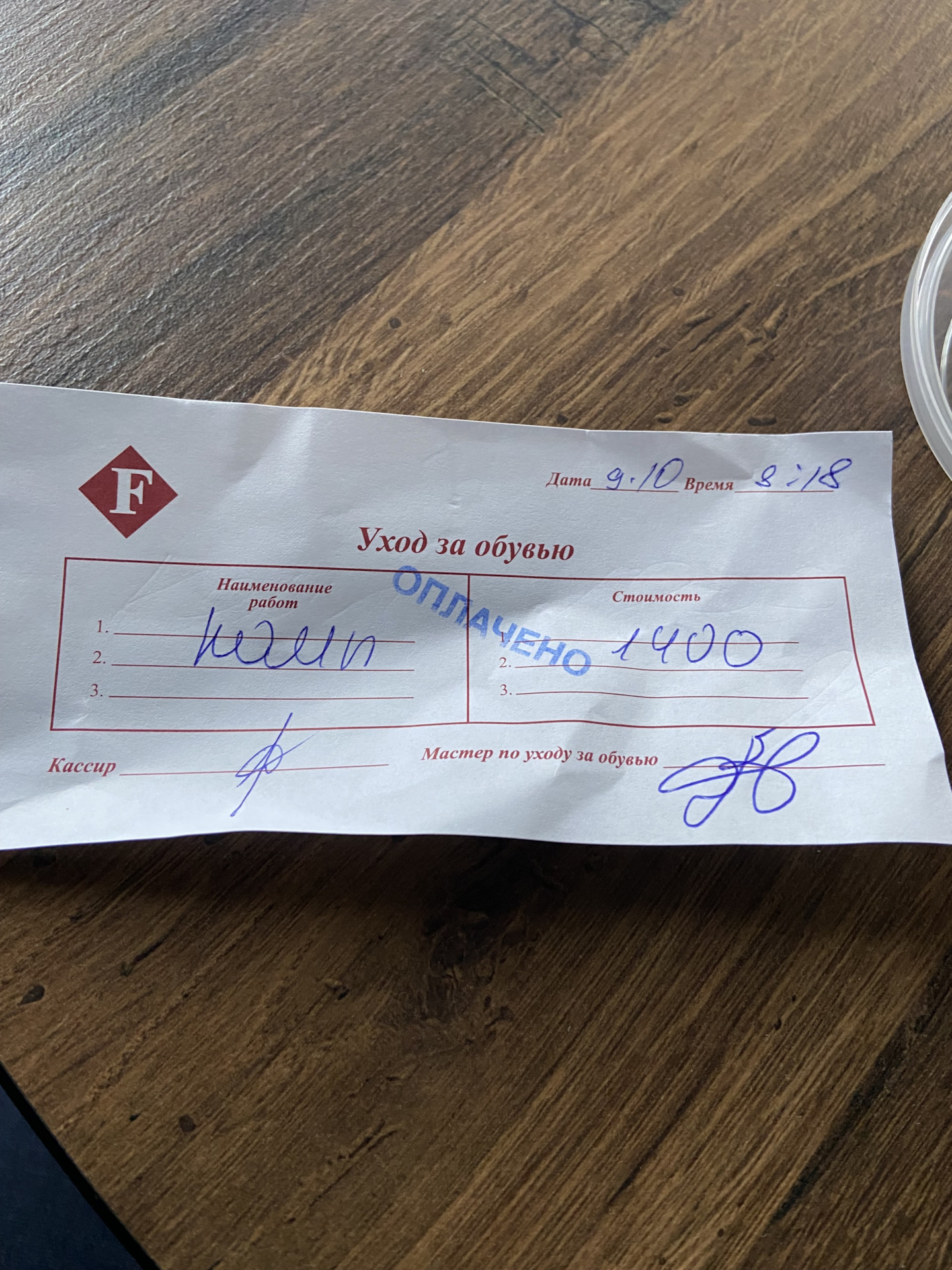А зачем они непонятный чек вам выдают?)) Они ваши 1400 провели мимо кассы а вам можно было и не давать чек от ботинок, а можно было бы просто написать от руки "чек на 1400" ;)