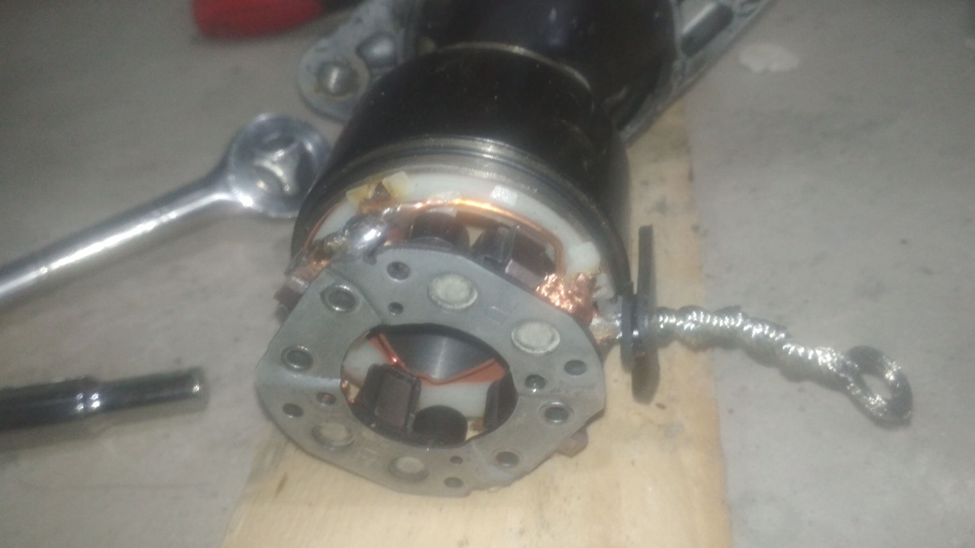 и неожиданный ремонт стартера, а именно пришлось заменить щетки. Я, выбрал вариант с заменой статарной обмотки, так как к ее выводам припаяны щетки, получает комплект, докупил щеточный узел, собрал, пока работает.
