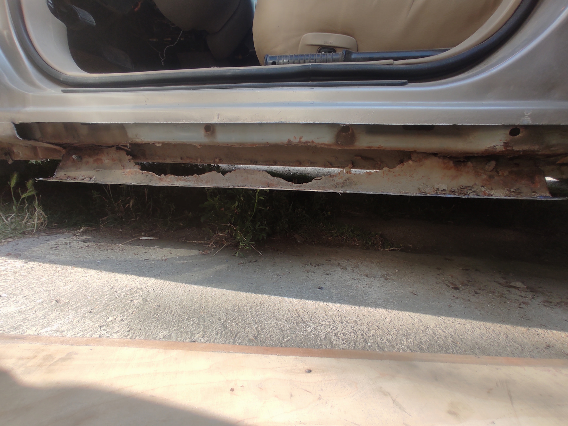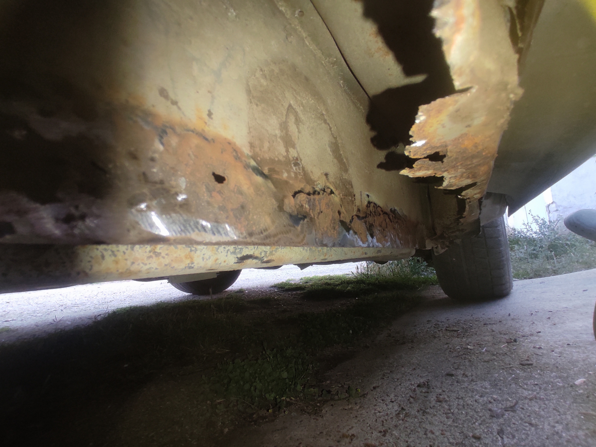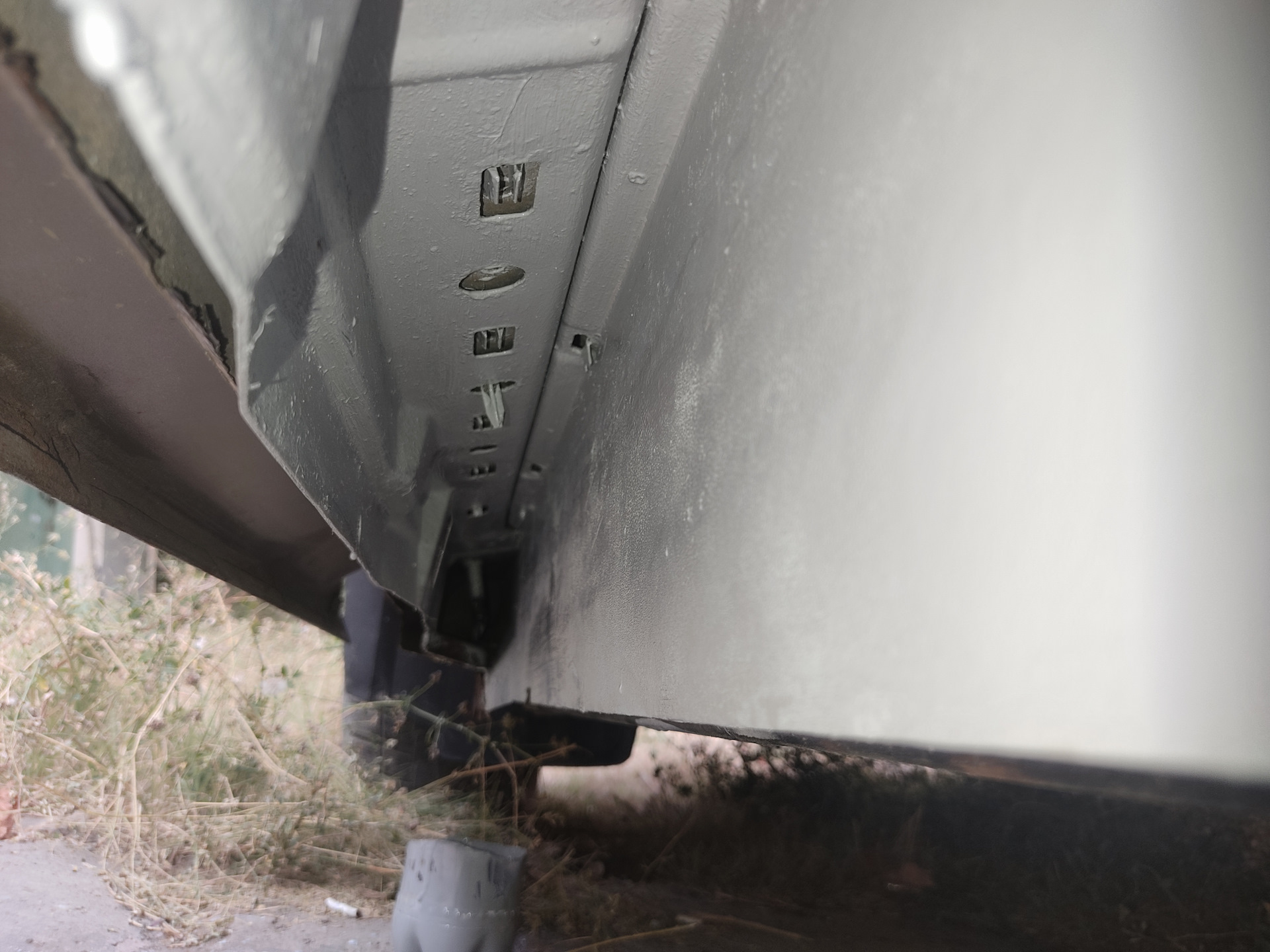 Сегодня немного гнилых историй про пороги, которые были следующими по списку работ. И так начнём, снял пластиковую накладку, выгреб горы земли, которая там копилась годами и принялся срезать всю гниль в виде накладки порога и внутреннего усилителя. После удаления поражённого металла приступил к творчеству, делал лекала из картона, переносил на металл, лист которого был заранее приобретён и ждал своего часа, вырезал, подгонял, примерял, опять подгонял, в итоге пазл потихоньку собирался и вырисовывался. Перед сваркой внутри всё вымыл, зачистил где были рыжики, задул эпоксидным грунтом и вварил изготовленные элементы. После зачистил все швы, задул эпоксидным грунтом и обработал все места сварки шовным герметиком. Процесс конечно долгий, нудный но результат порадовал, на фоне того что было изначально. С другой стороны всё аналогично, радует то, что все лекала теперь есть, не надо по 20 раз лазить под машину с поимерками, надеюсь процесс пойдёт быстрее.Всем удачи.