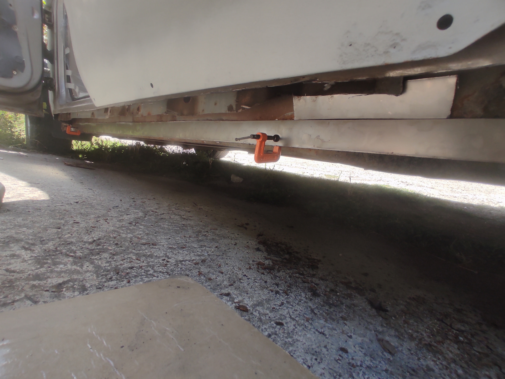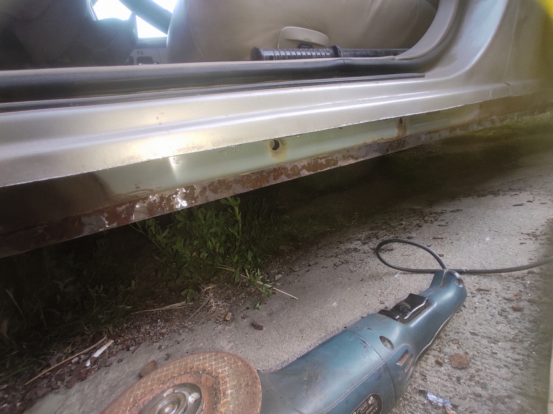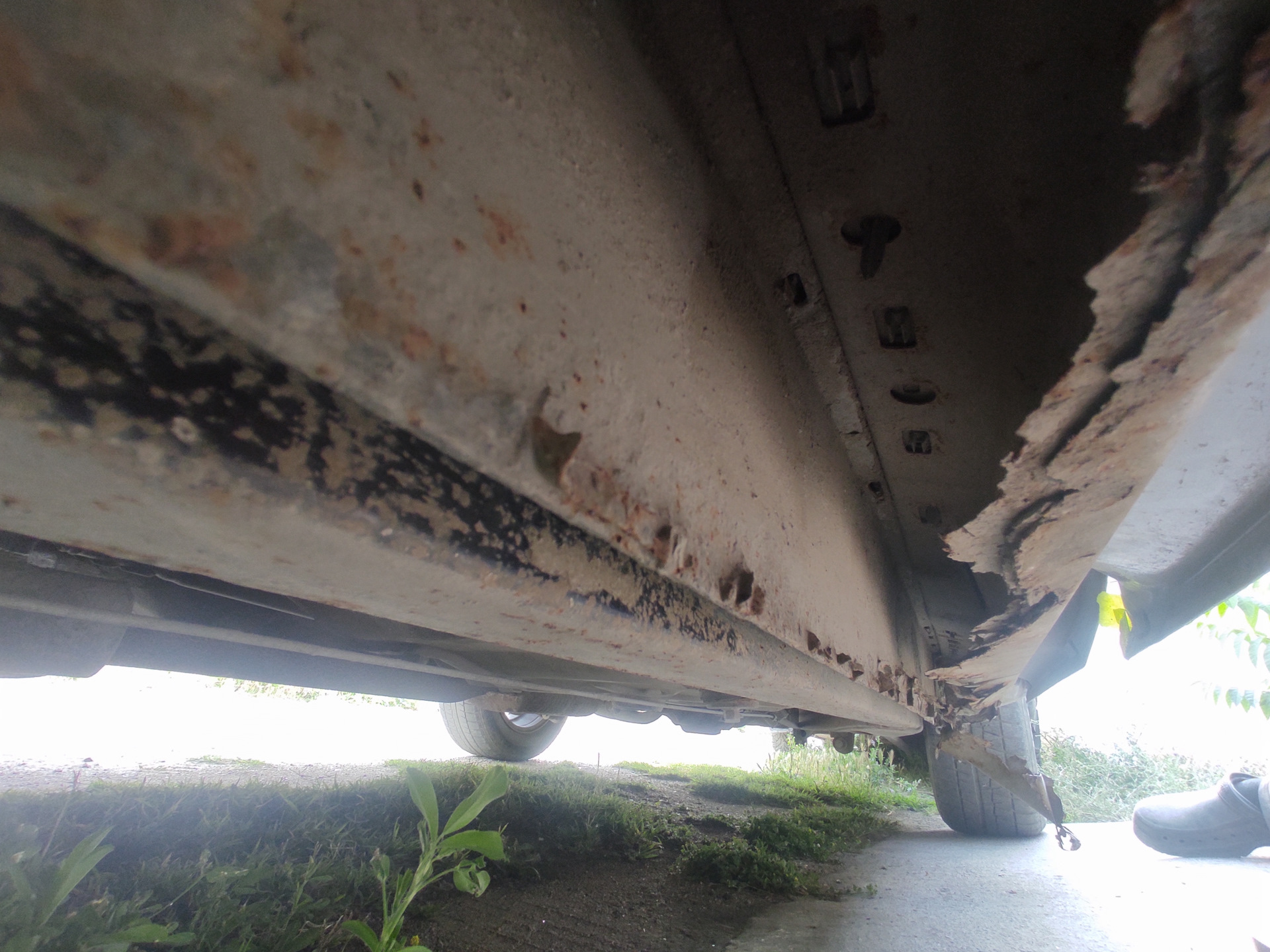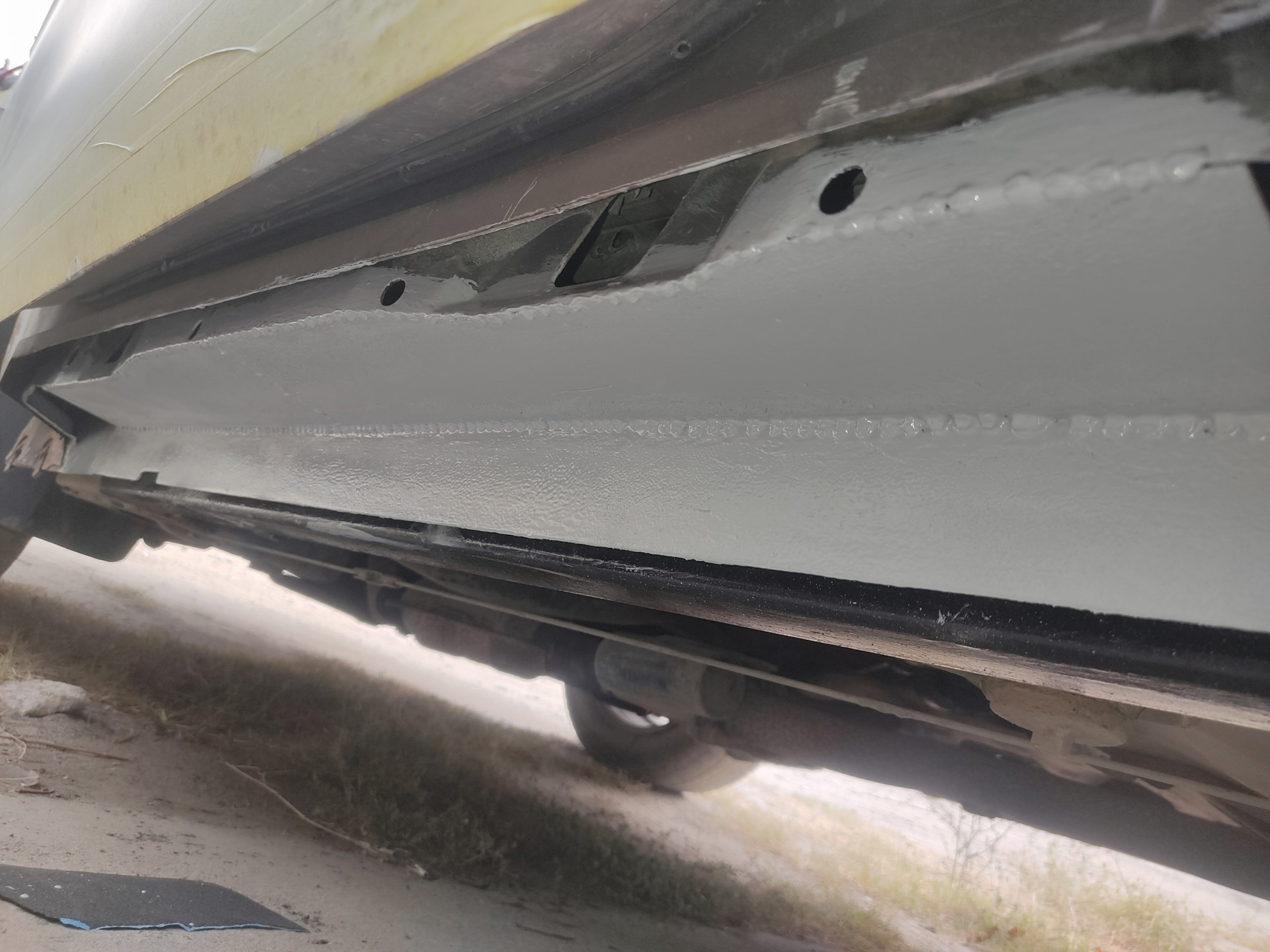Сегодня немного гнилых историй про пороги, которые были следующими по списку работ. И так начнём, снял пластиковую накладку, выгреб горы земли, которая там копилась годами и принялся срезать всю гниль в виде накладки порога и внутреннего усилителя. После удаления поражённого металла приступил к творчеству, делал лекала из картона, переносил на металл, лист которого был заранее приобретён и ждал своего часа, вырезал, подгонял, примерял, опять подгонял, в итоге пазл потихоньку собирался и вырисовывался. Перед сваркой внутри всё вымыл, зачистил где были рыжики, задул эпоксидным грунтом и вварил изготовленные элементы. После зачистил все швы, задул эпоксидным грунтом и обработал все места сварки шовным герметиком. Процесс конечно долгий, нудный но результат порадовал, на фоне того что было изначально. С другой стороны всё аналогично, радует то, что все лекала теперь есть, не надо по 20 раз лазить под машину с поимерками, надеюсь процесс пойдёт быстрее.Всем удачи.