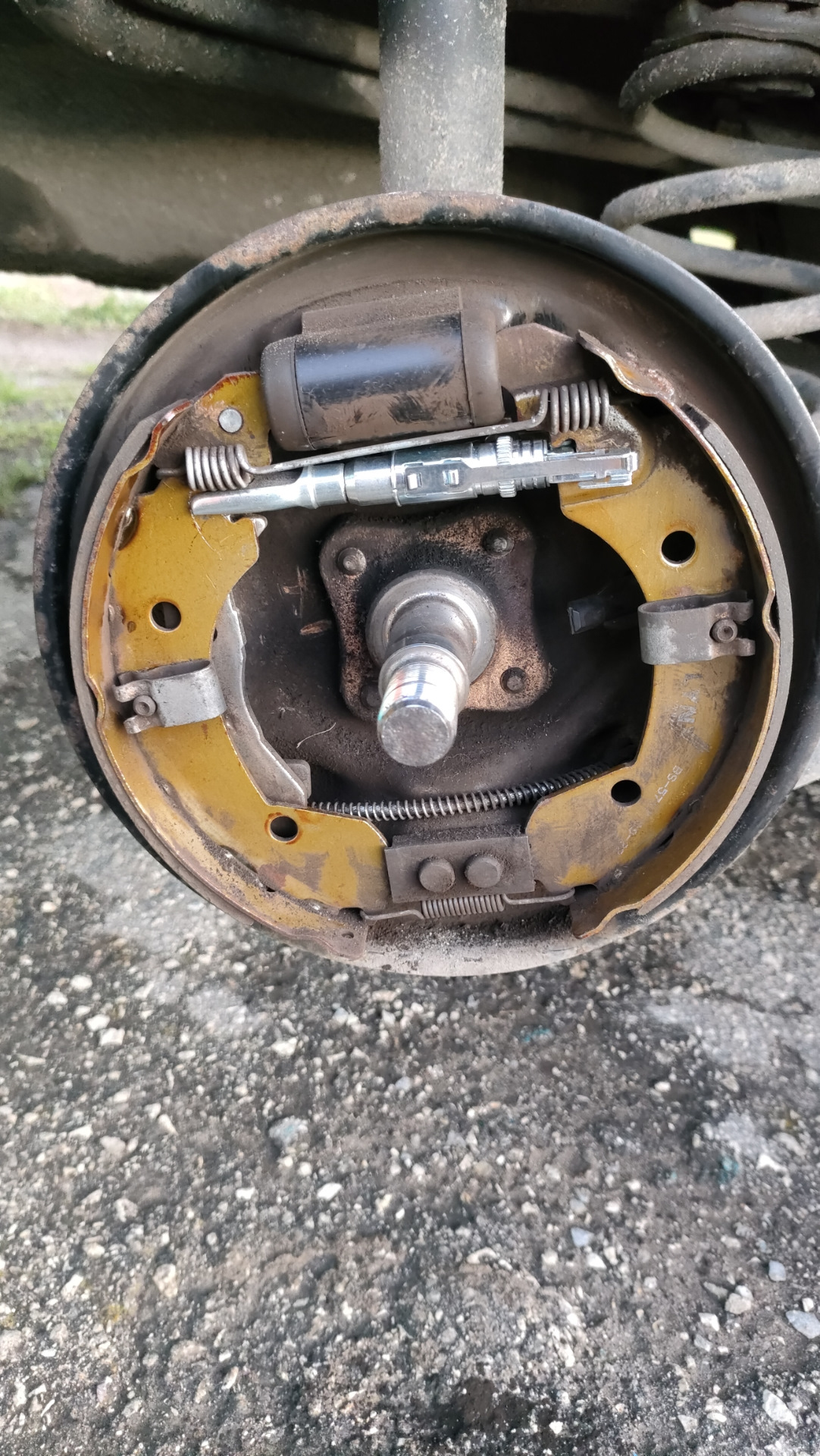 Не работающий механизм подвода колодок, а так же невозможность его заменить на аналогичный, который устанавливался с завода.