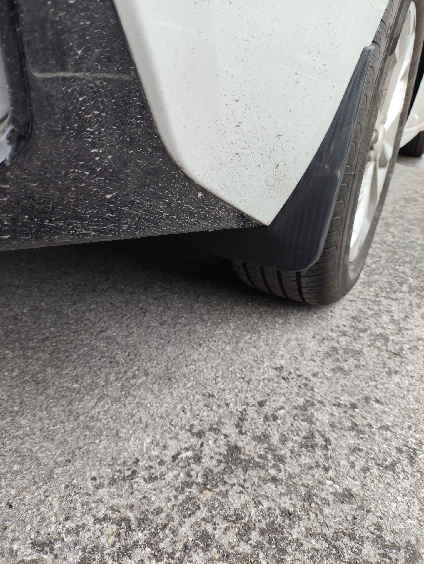 Процесс установки занял около часа (колеса не снимал), задние брызговики встали как родные (все дырки под штатные саморезы совпадают, колхозить не надо), с передними пришлось повозиться встают в штатные дырки но внутренняя часть на место не садится и выпирает во внутрь арки (пришлось ножом подрезать). Вообщем передние подрезал (колхозил), чтобы более менее подогнать под кузов. В результате смотрится нормально, но не рекомендую покупать такие, из-за передних брызговиков которые нормально без колхозинга на кузов не садаться.