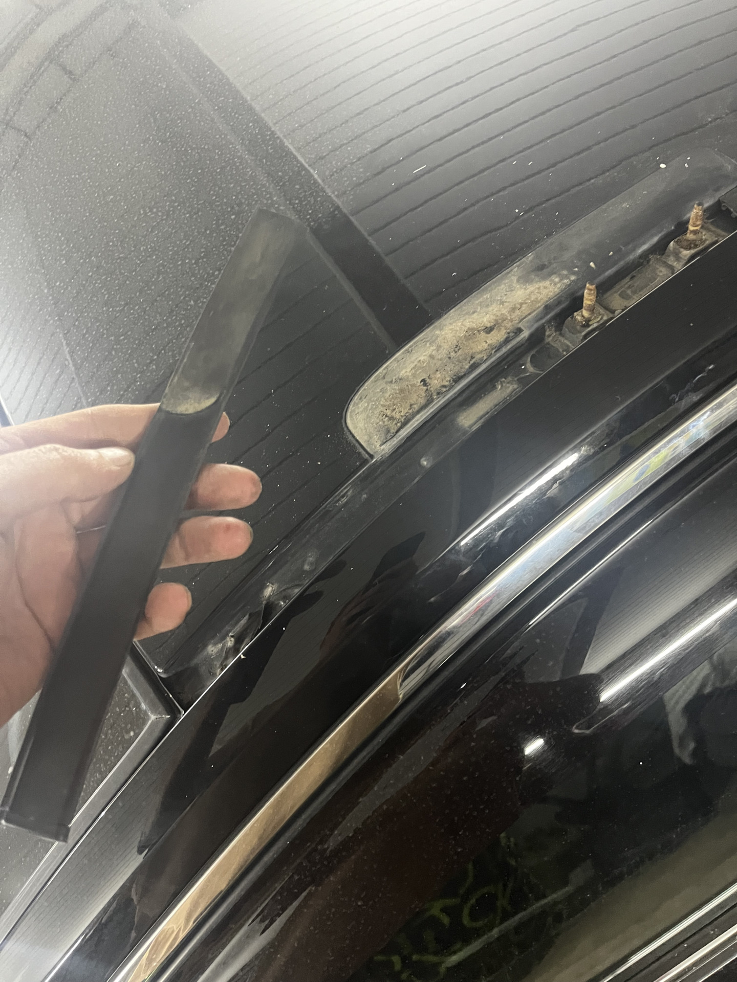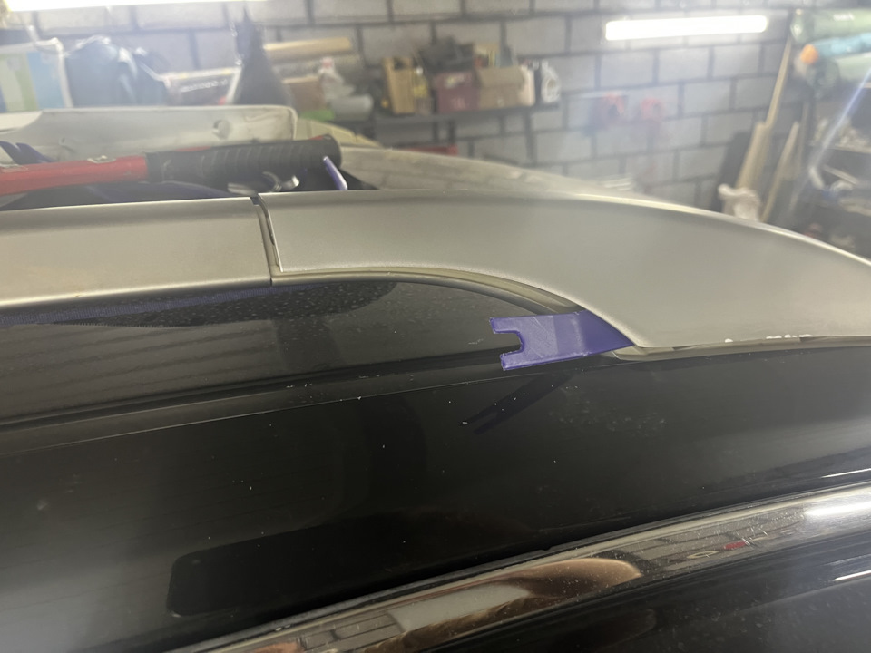 Так как навожу полный марафет машине, остались только облезлые рейлинги, жена постоянно ездила на бесконтактную мойку, а там напор будь здоров, ну и со временем краска смылась!Концевики рейлингов снял с третьего подхода, спрашивал у всех как и почему, очень хрупкий пластик видать солнце сделало свое дело! Короче снимаются они с горем пополам, надо сдвинуть концевик к лобовому стеклу на 3-4мм и потом по бокам с двух сторон засунуть пластиковые съёмники и браться двумя руками и шевеля тянуть вверх, но всё-таки некоторые фиксаторы сломались! Красил в снежку и сверху лак, теперь еще на 20 лет хватит😎!
