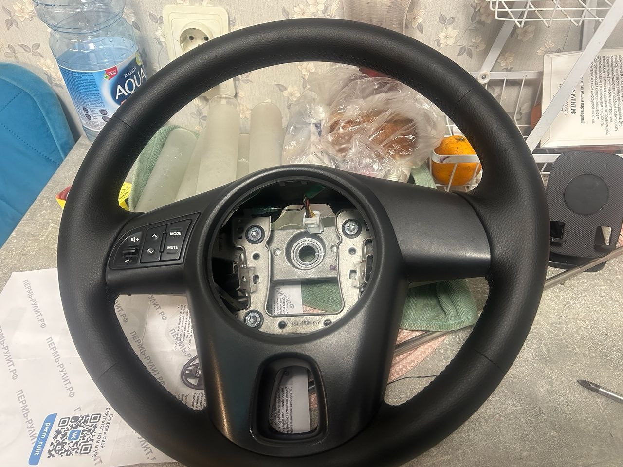Ну и чёт насмотревшись на наших коллег, решил перешить руль, ибо родной начал трескаться.Был приобретён набор на маркетплейсе и за час полтора вроде и ничего получилось )))