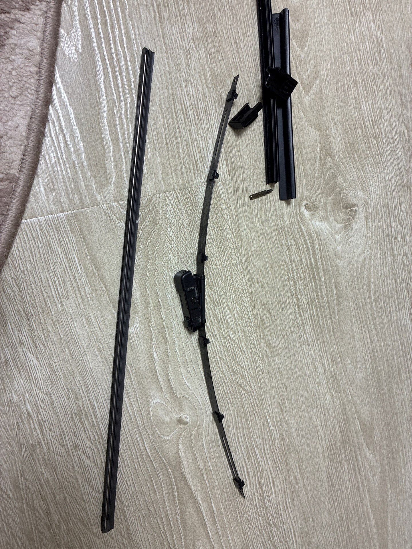 Значит толщина несущих наплывов была больше родной. Просто ты пытался впихнуть неподходящую резинку. Если ставишь подходящую резинку, то процесс занимает не более минуты вместе с разборкой, заменой, подрезкой по размеру щетки, сборкой и установкой.