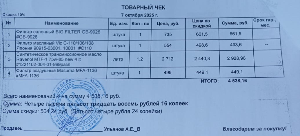 Итак, очередная замена масла в ДВС, естественно с масляным фильтром. Так же воздушный и салонный фильтры. Плюс по регламенту подошло время менять масло в редукторах.