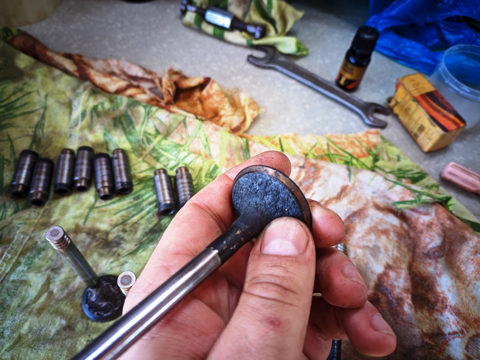 После дичайшего масложора нужно приводить все системы в порядок. Даже страшно представить себе, что творилось в катализаторе в те моменты хорошего аппетита на масло, если клапаны имеют вот такой вид. О количестве масла, сгоревшего в цилиндрах, можно и не упоминать…