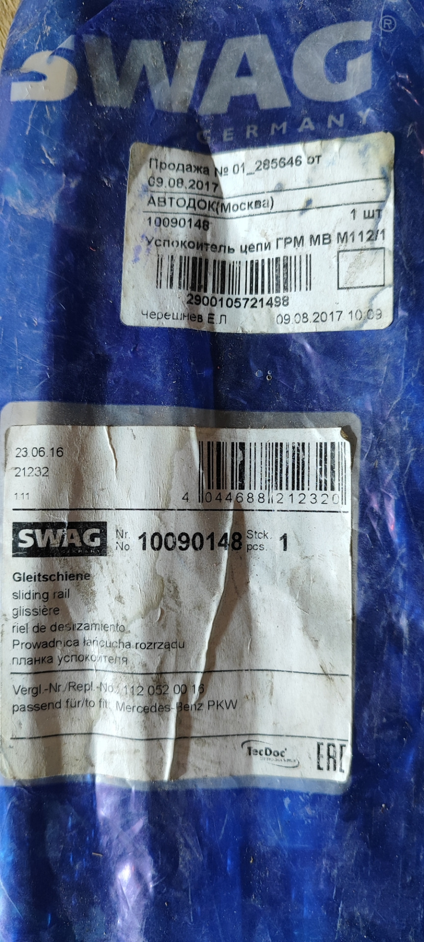Планка успокоителя цепи ГРМ-Swag — 10090147 -2 шт — по 2.000 рублей