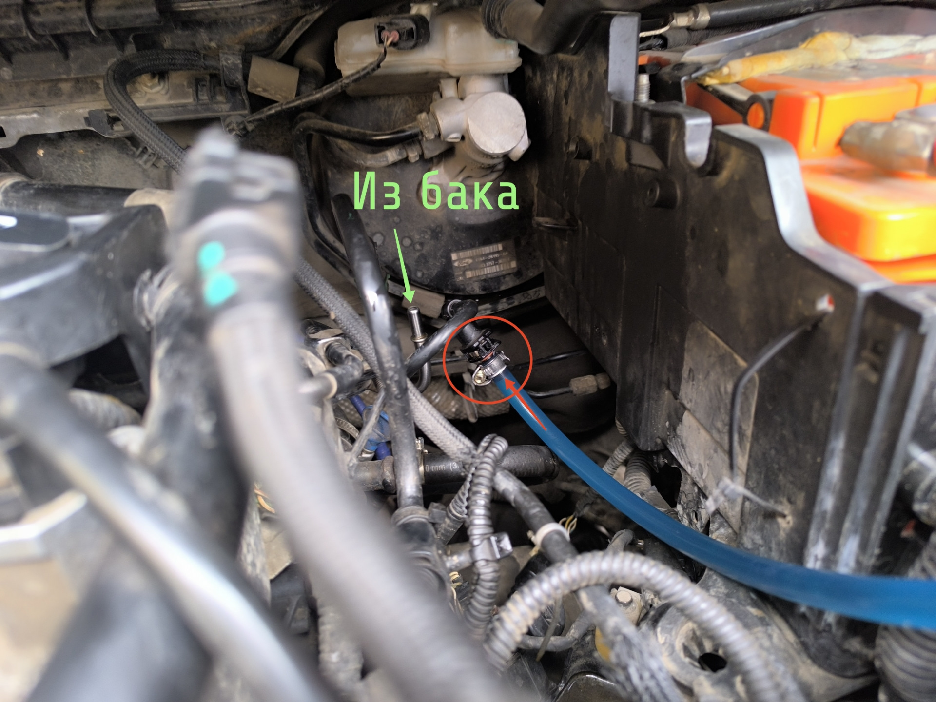 Далее: прогрев двигатель до 80° где-то, снимаем f56 предохранитель насоса топлива, стравливаем давление бенза, ставим Б/у свечи или можно поставить потом новые, снимаем штуцер с белой защёлкой от топливной и подключаем нашу самоделку, набиваем давление 2 бара, заводим авто и на холостом, 10 или 15 мин. Потом отдых минут 15, далее заводим и до последнего переодически поднимаем обороты 1500 и 2500.