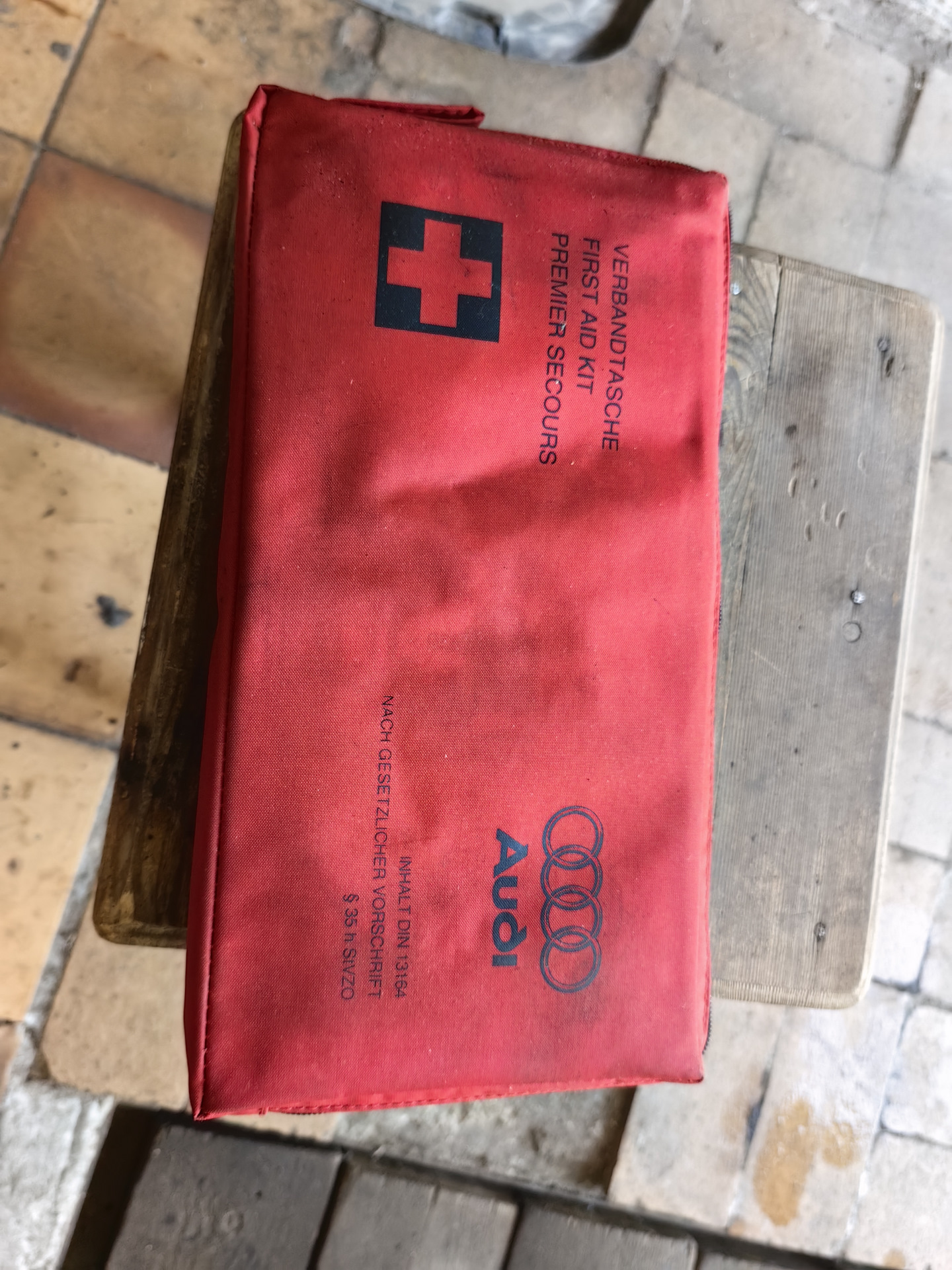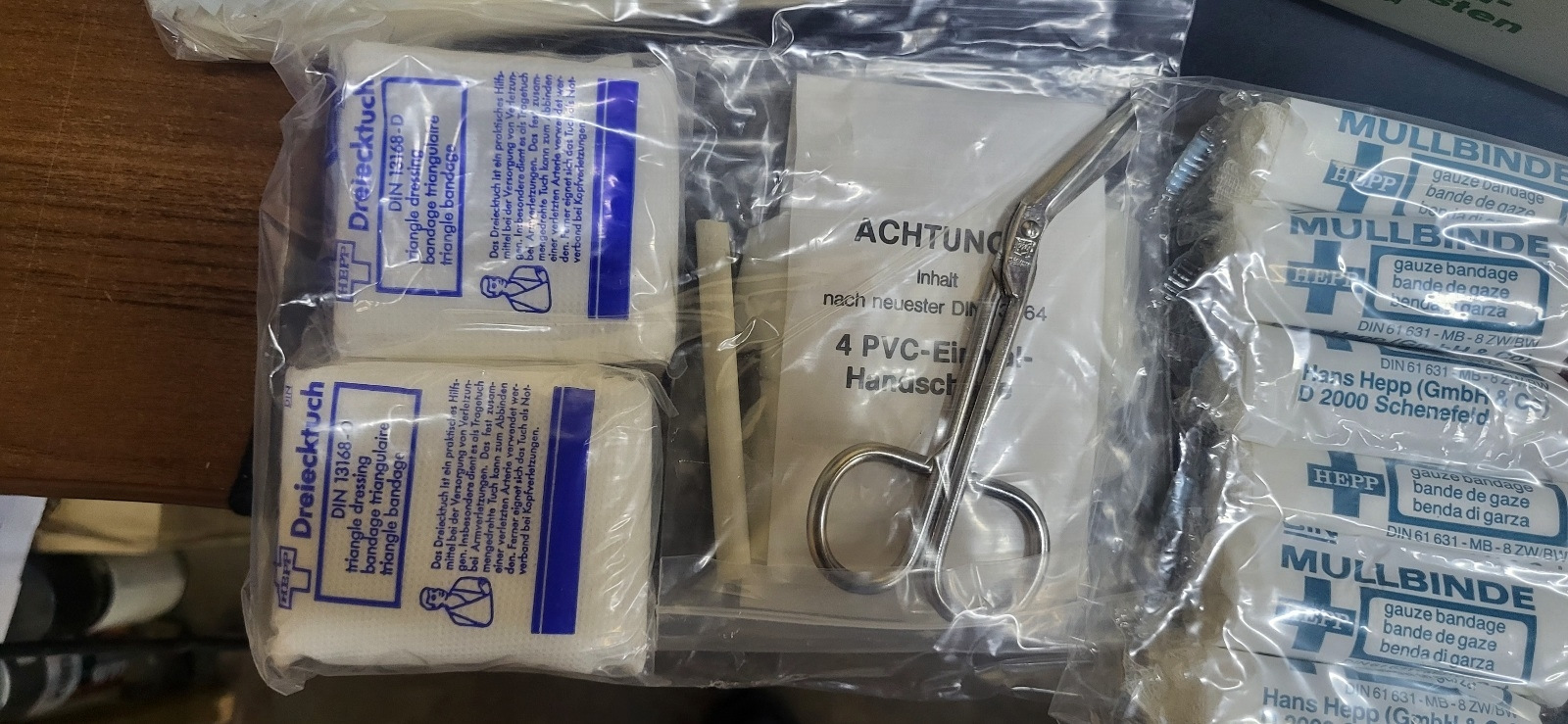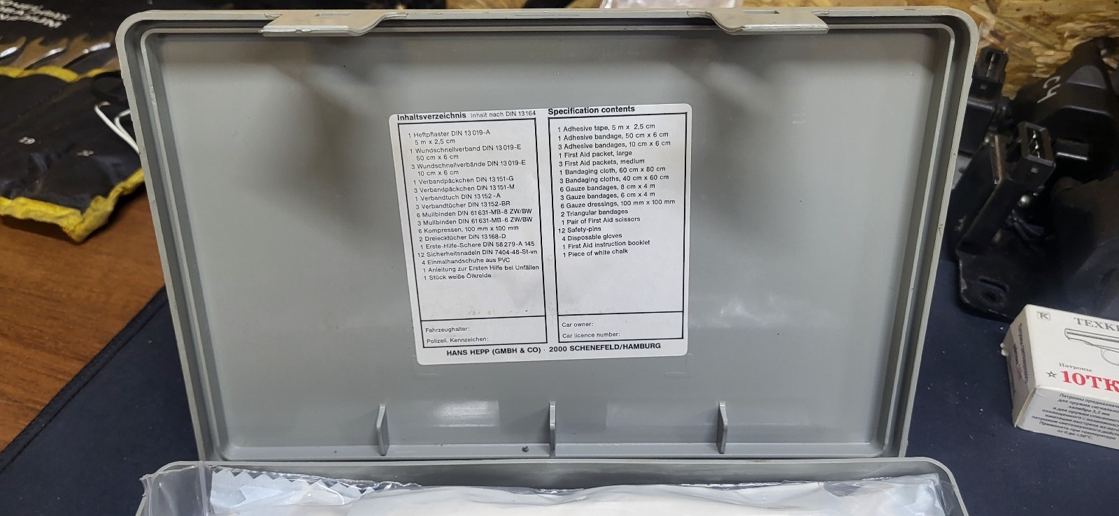 Все правильно сделал — немецкие бинты и прочее, пусть даже и тридцатилетние, по качеству не сравнятся с тем хламом, что продается сейчас. В аптечке w124 помнится, было наполнение производства Hartmann.
