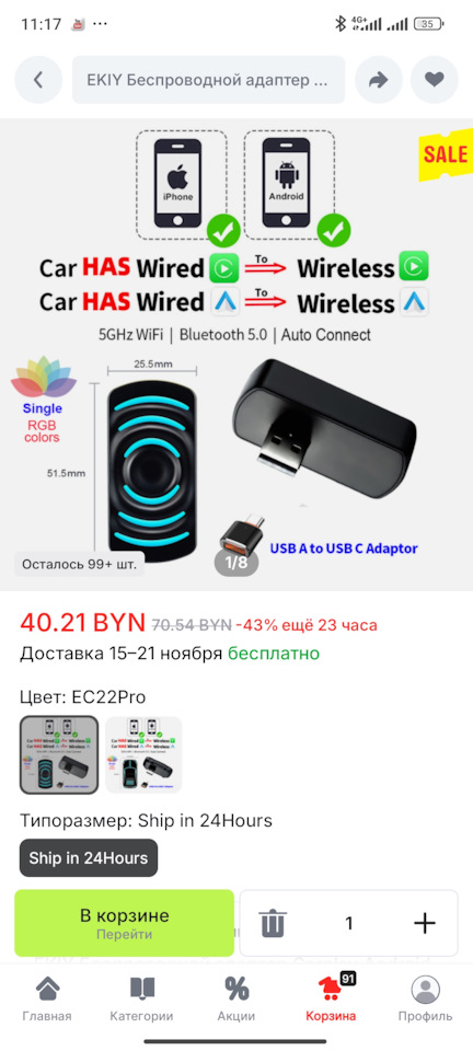 Так на синем маркетплейсе был заказан данный девайс.Carplay Android Auto беспроводной адаптер 2в1