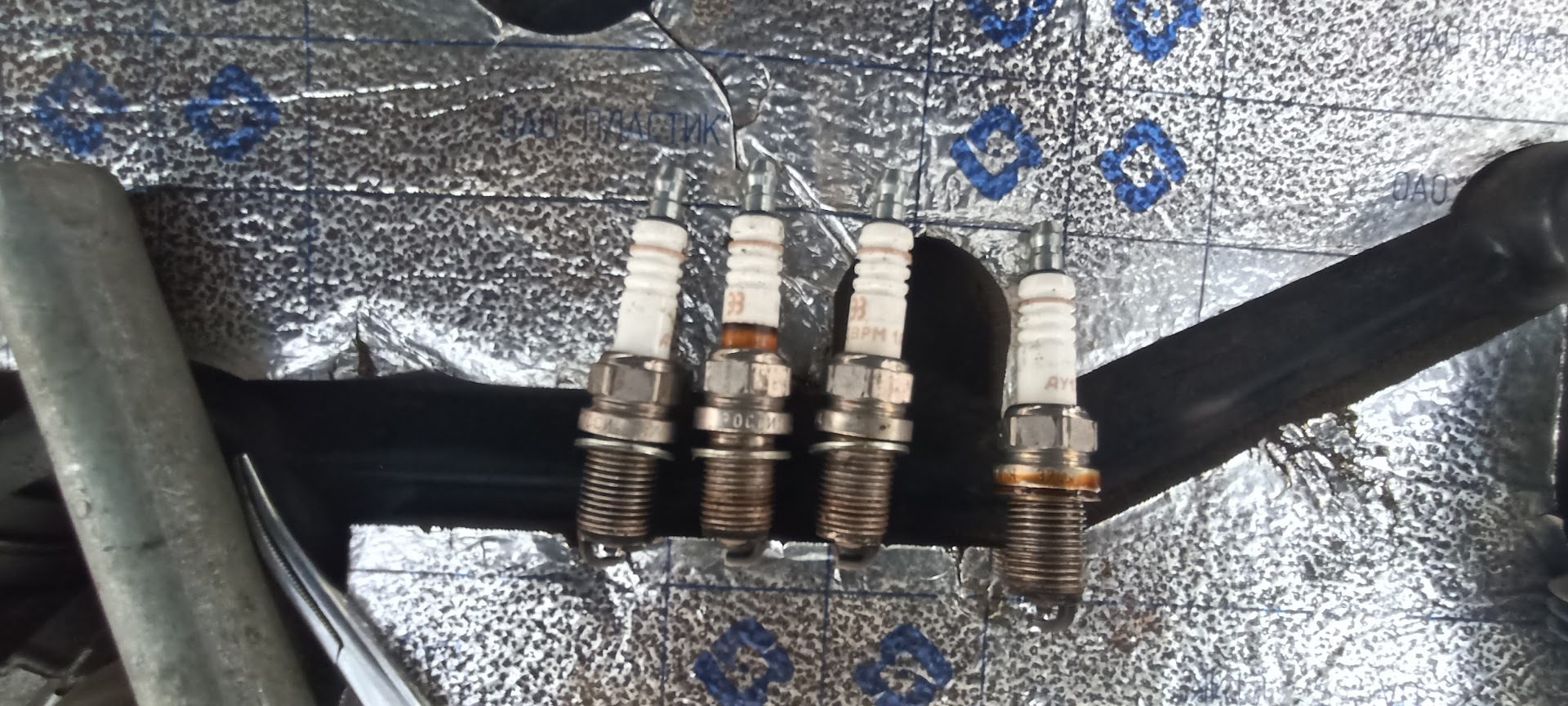 Вынул катушки. Они все были разномастные, четвертая со следами пробоя. К тому же у четвертой катушки остался на свече резиновый наконечник (несмотря на то, что я его приклеивал). С помощью длинного хирургического зажима удалось наконечник достать из колодца.