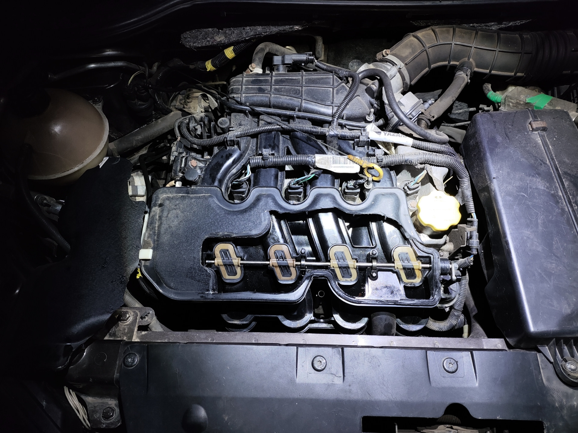 Взорвался впускной коллектор, вырвало большой кусок пластика крышки. Быстро найти коллектор не получилось, да и новый дороговато стоит, поэтому было принято решение временно его как-нибудь залепить и искать варианты по приемлемой цене. Залепил у сервиса армированным скотчем и поехал домой, скотч по итогу держал не очень хорошо и от нагрева клей поплыл, но до дома добраться хватило. Дома уже закрепил большой кусок крышки с помощью скобок