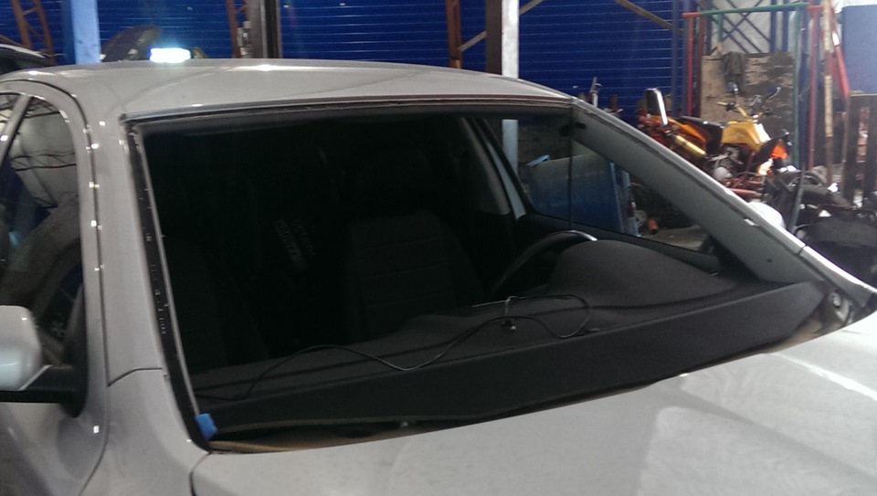 Приехал как и обговаривали к 11-00, сразу приняли в работу. Спустя 3 часа машина получила обновленное стекло без сколов, трещин и самое главное получила полный обогрев. Из всех вариантов подключения рассматривал либо подключение к кнопке подогрева заднего стекла, либо установкой отдельной кнопки — на этом варианте и остановился. Ниже небольшой фотоотчет.