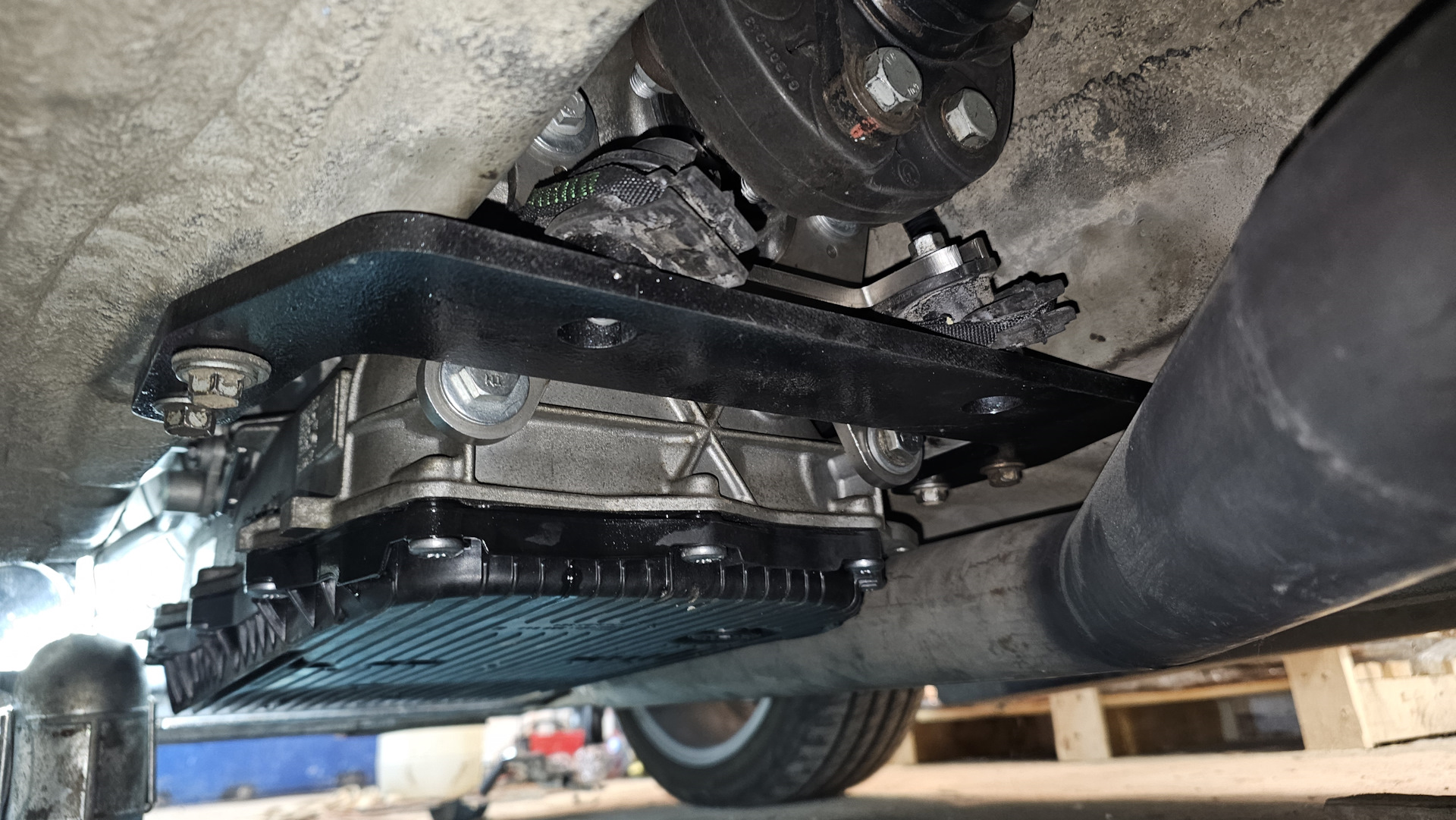 В 3й раз установка акпп, уже с подтяжкой на траверсе сзади. Не лезет она. Никак. Не для неё этот тоннель.