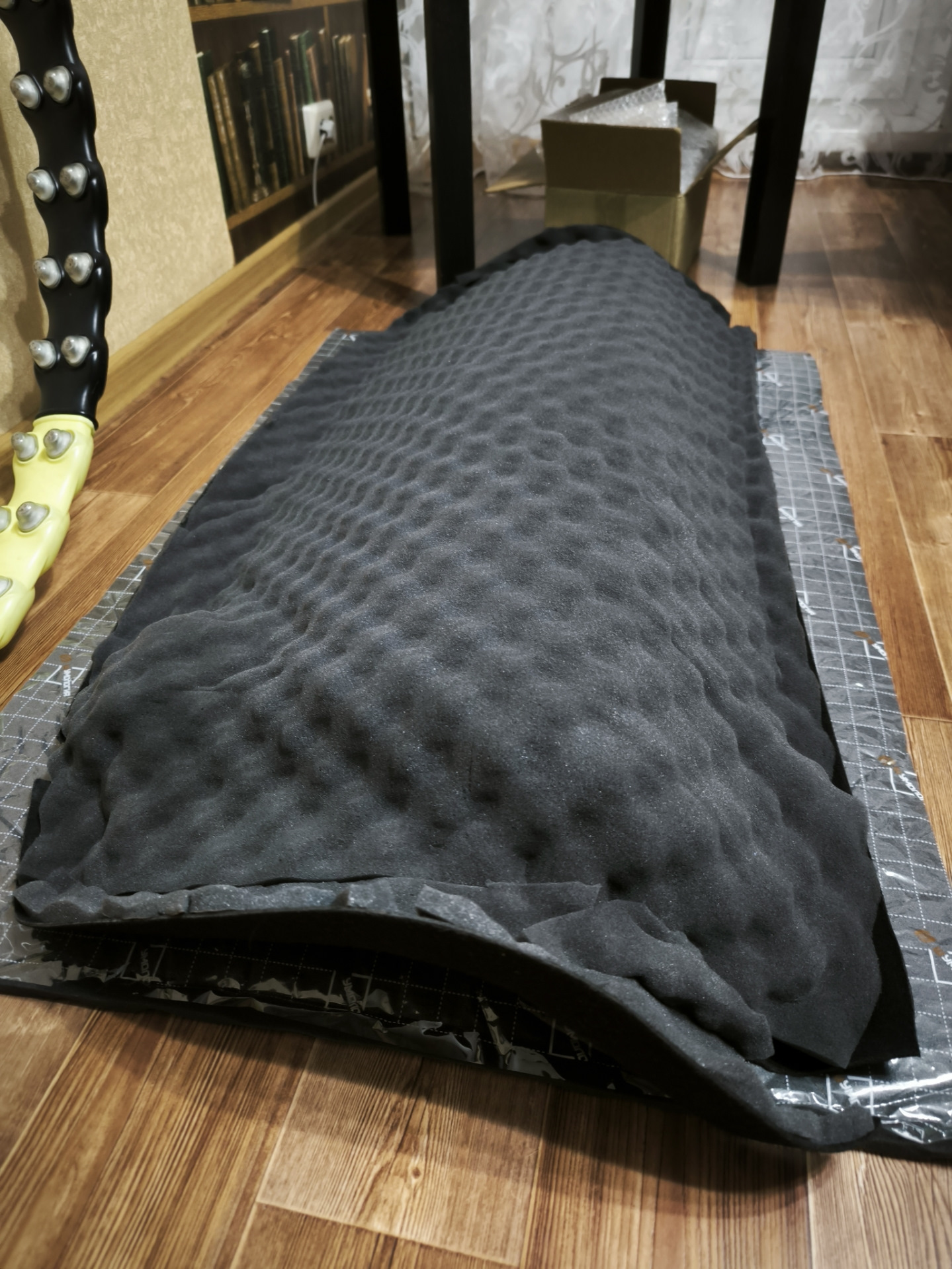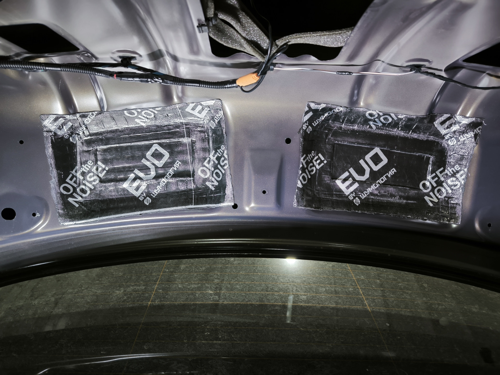 Ну и была снята обшивка багажника, оставалась шумка, вибра. Решил укатать крышку. Моем, протираем, сушим, обезжириваем, работаем.