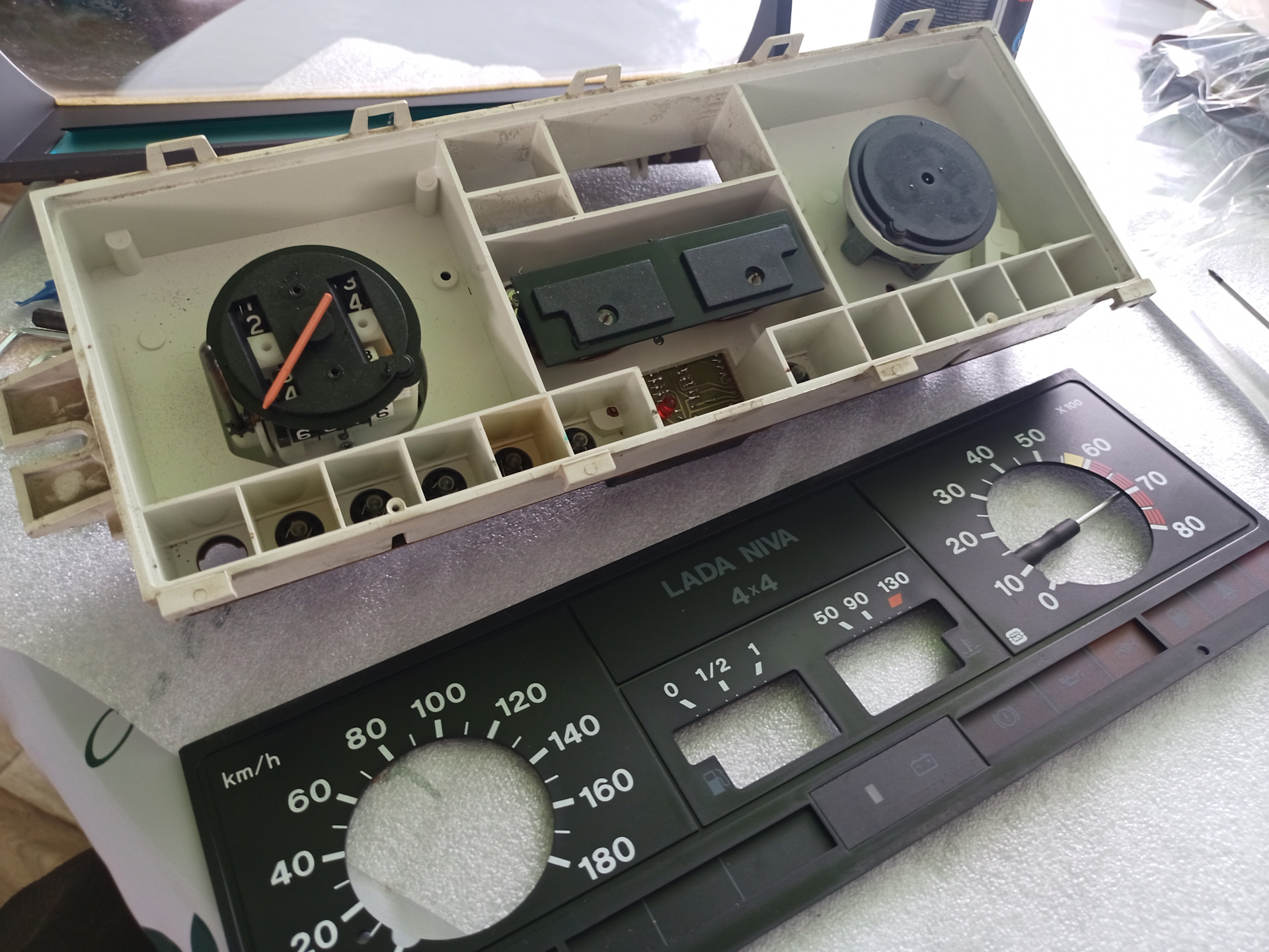 Привет народ, друзья и гости страницы ✊🤝. Катаясь как-то в темное время суток, поглядывая на приборную панель, меня посетила мысль о том, что мне категорически не нравится как она выглядит.😏 Нет, конечно расположение всех показателей и стрелочек смотрится довольно не плохо👌, но почему у нее такая фиговая подсветка. Есть же Нивы посвежее, там приборка темная, а все элементы показаний подсвечиваются лампами, или диодами. А на более старых там тупо светильник, поверх приборки 🤯. Ну надо же с этим что то делать, иначе некомфортно с каждым днём больше и больше.
