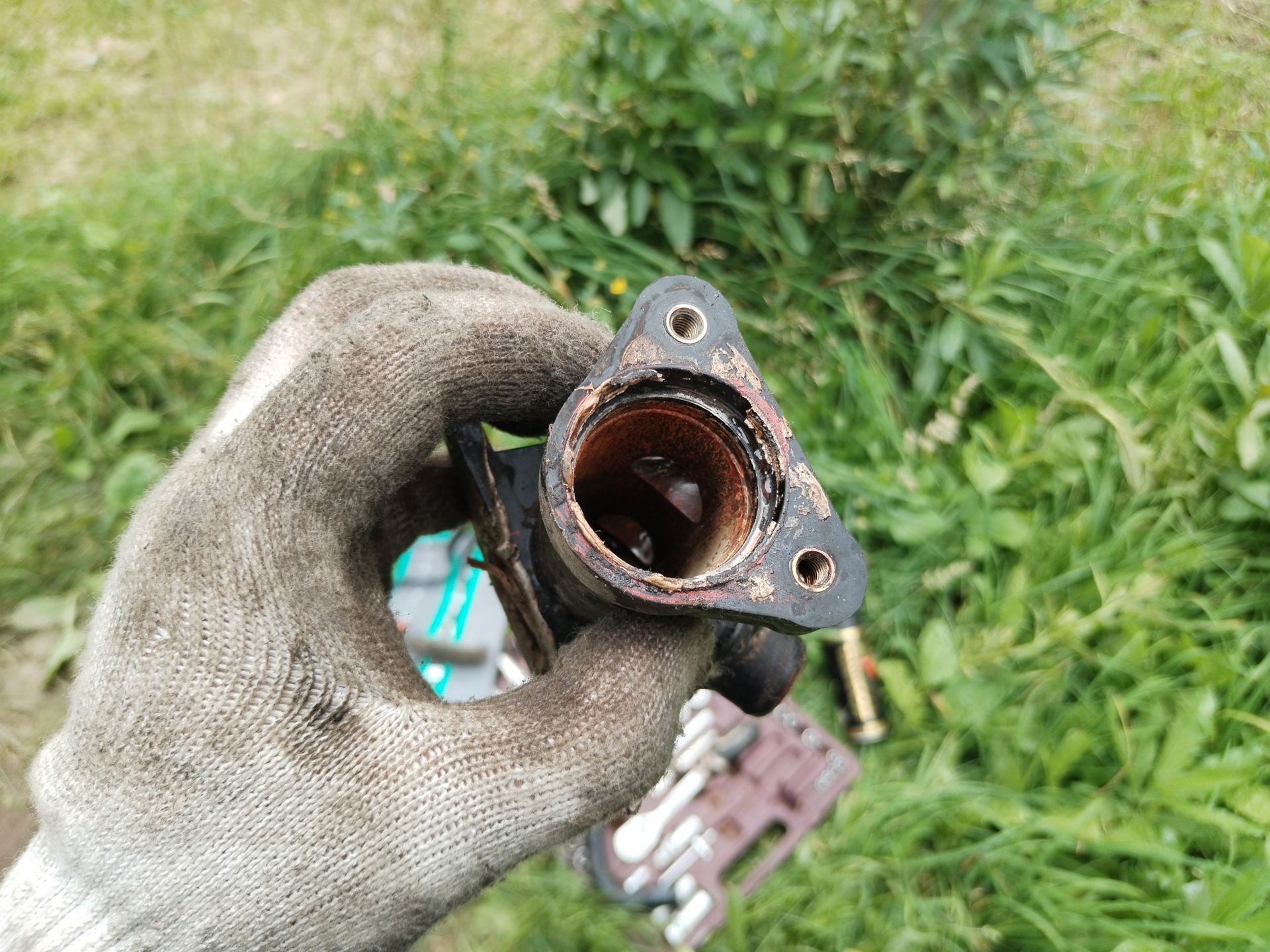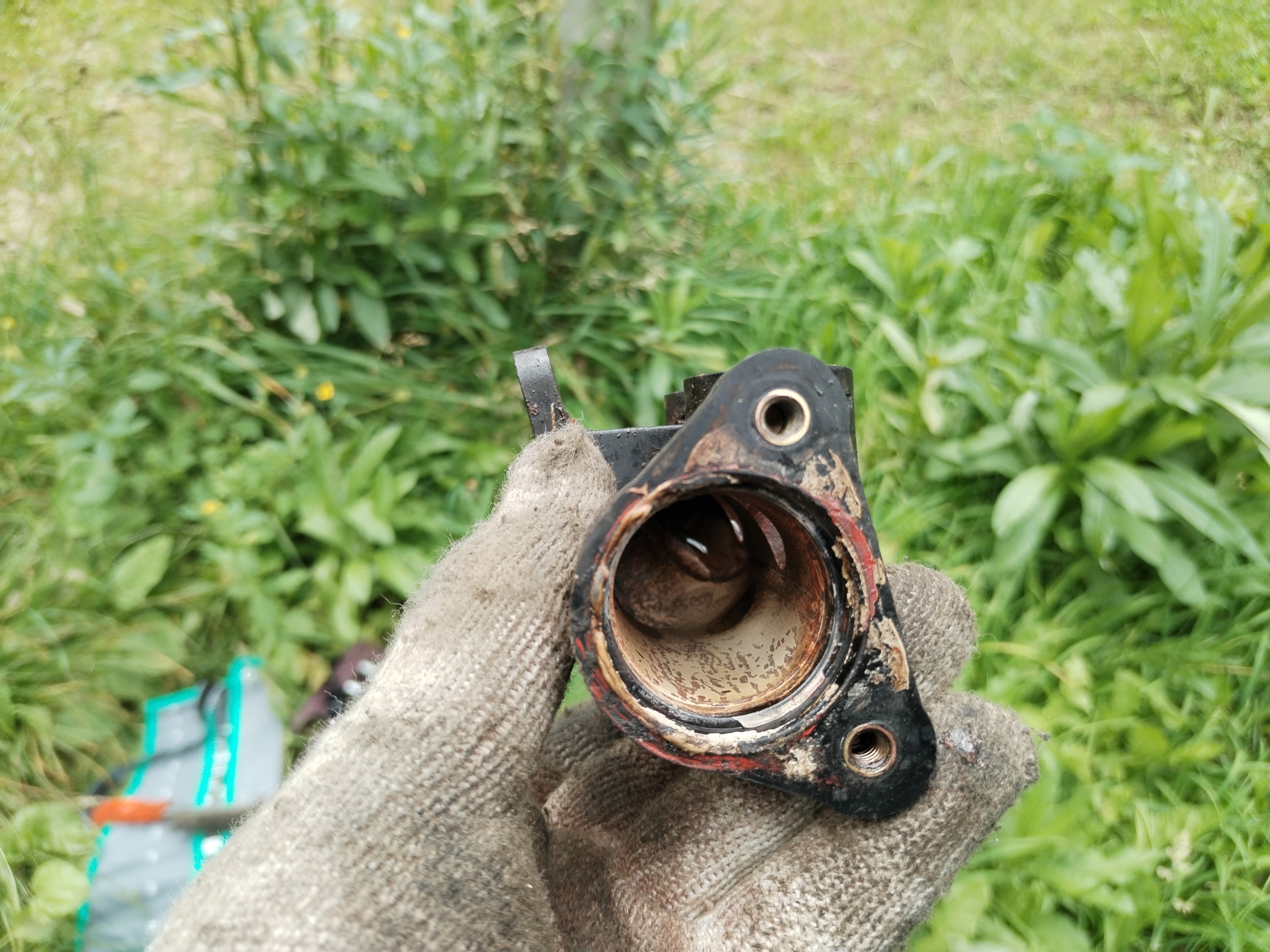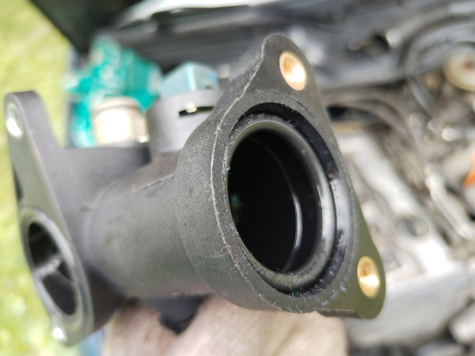 2. Фланец (тройник) "Улучшенной системы охлаждения". По дороге в город загорелась лампочка температуры, остановился и тут же из под капота повалил пар! Через минут 5 причина была найдена, патрубок фланца выдавило и вся ОЖ вытекла. Звонок близким, привезли воды накинул обратно патрубок (Благо стопорное кольцо не пролюбилось) залил воды и к дому. Через дней 5 ситуация повторилась только уже прям у дома. Замена фланца немного Ох.ел от того как было сделано и проблема решена. Так же замена уплотнительных колец сразу на все датчики, 2 на фото, третий возможно на климат (не могу точно сказать).