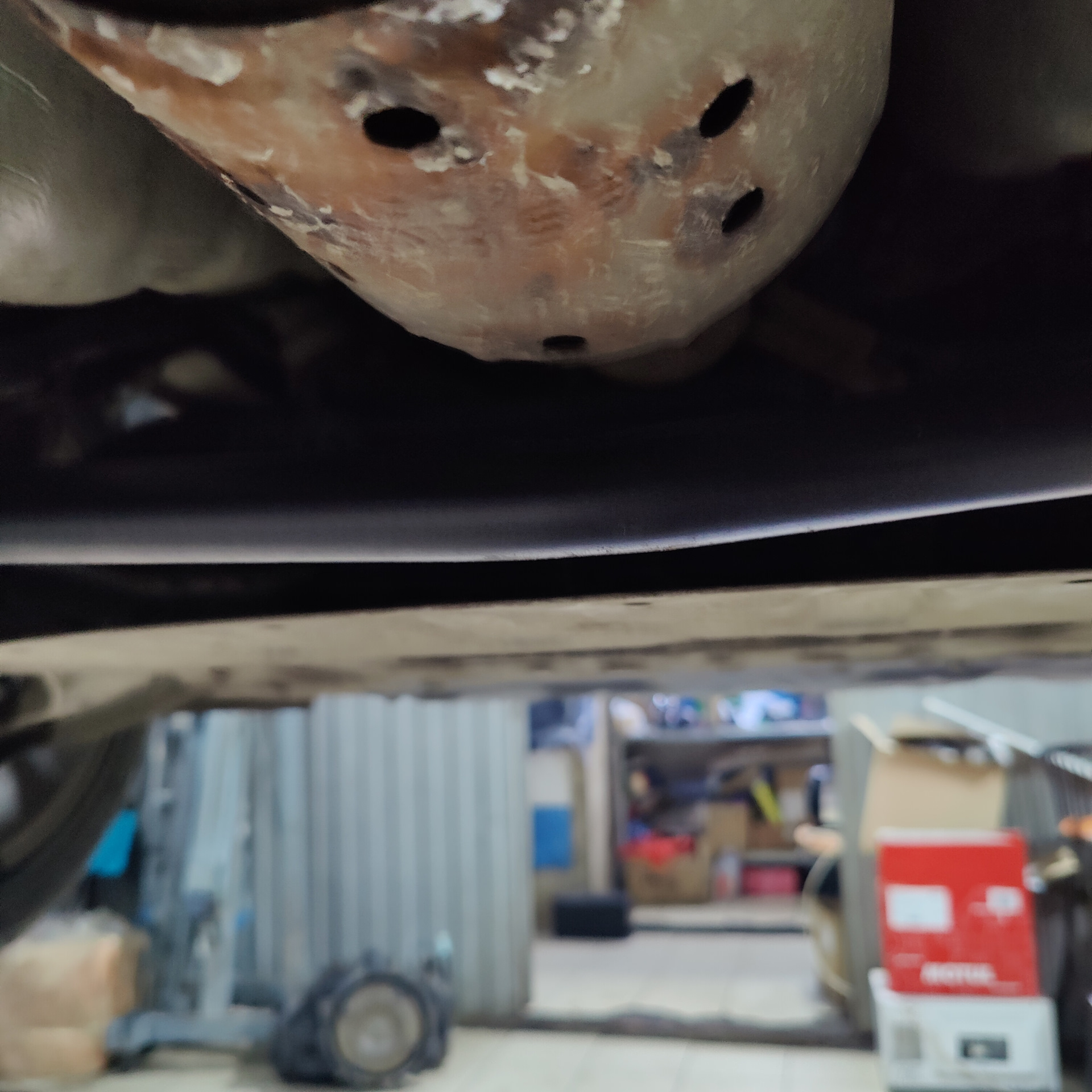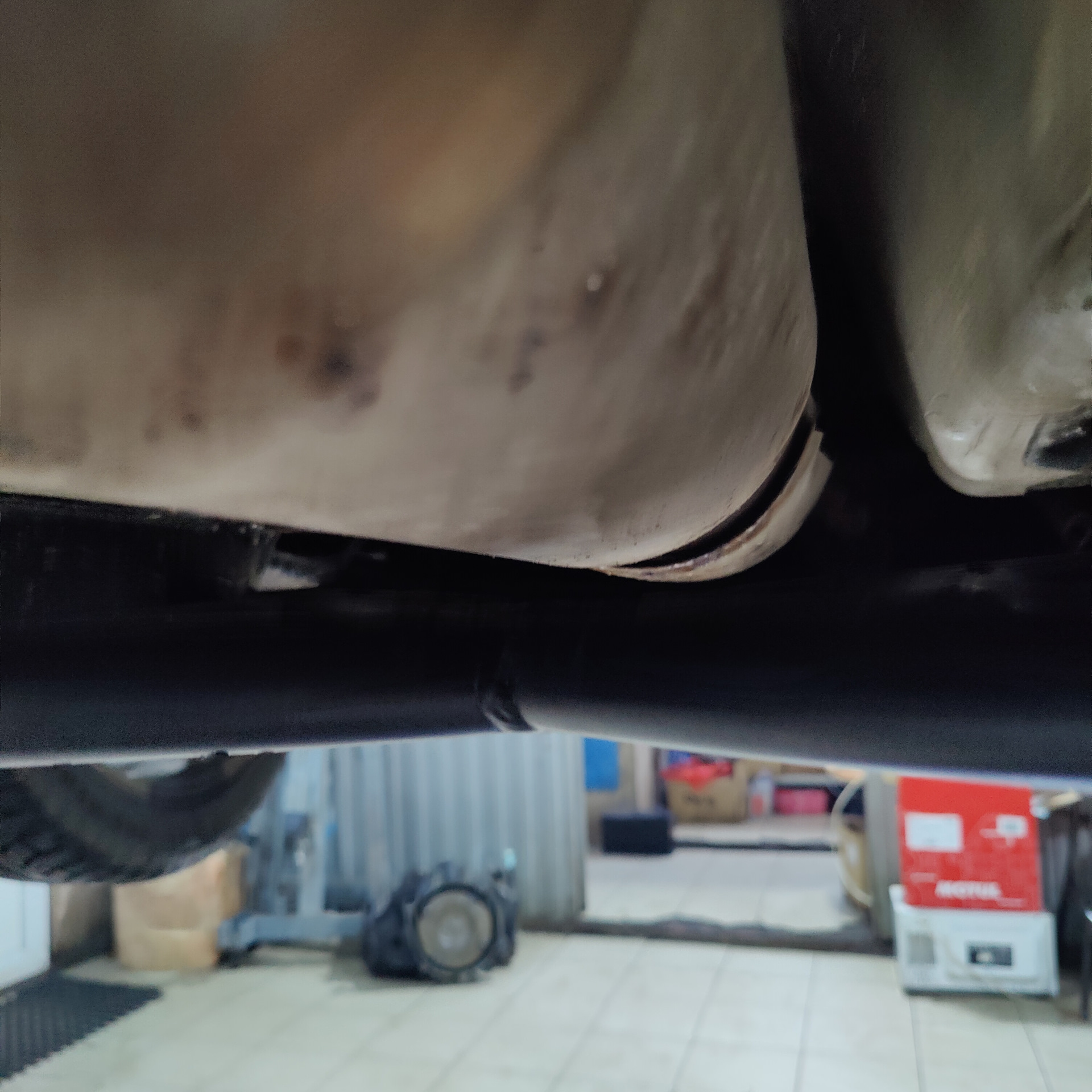 Пришлось править ее немного. После правок зазор между распоркой и выхлопом был толщиной с ладонь, а распорка была вровень с днищем машины.