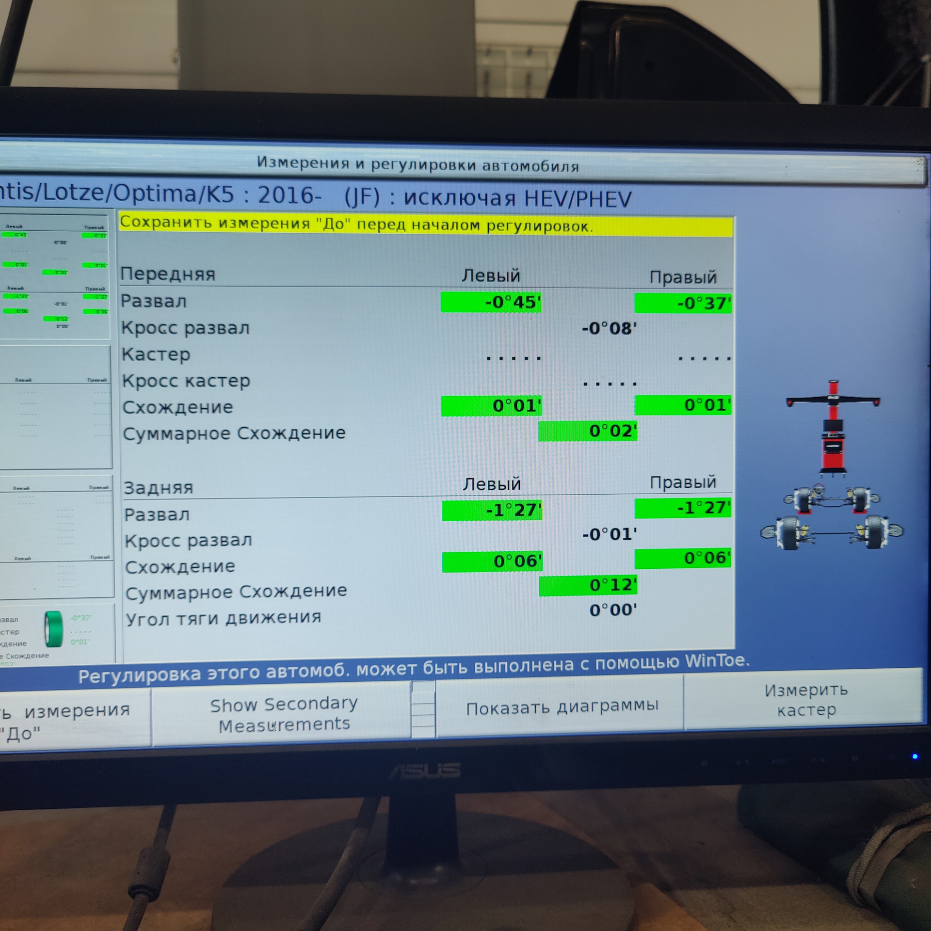 После датчиков следующей остановкой был сход-развал, выставили углы в пределах нормы, но по самой границе этих допусков. По идее должна быть более устойчивой в поворотах и дугах.
