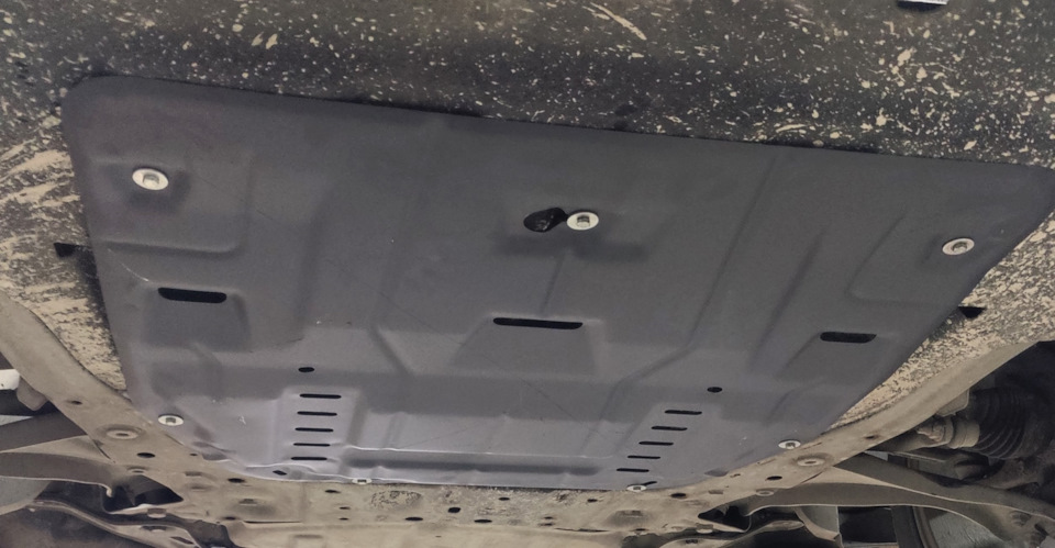 Замена масла и фильтра без интересностей, защиту двигателя поставили поверх заводской пластиковой защиты.