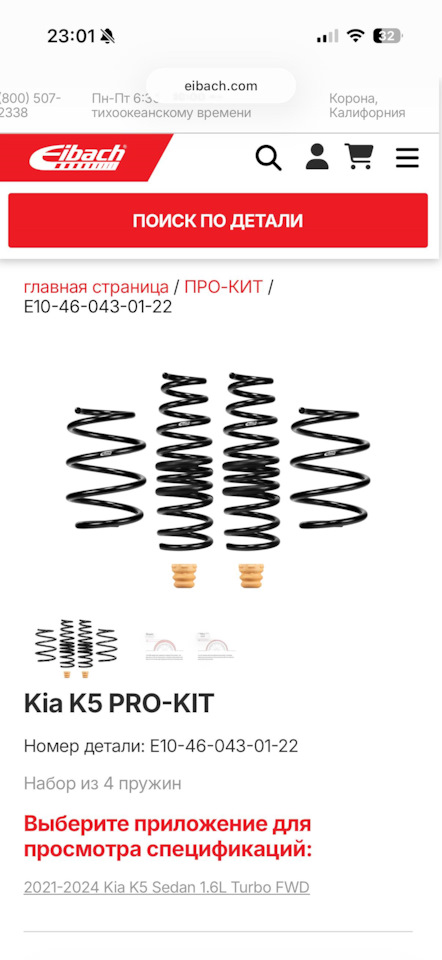 Мы, компания Eibach China, произвели комплект E10-42-049-01-22, который мы изготовили эксклюзивно в соответствии с техническими требованиями нашего заказчика.