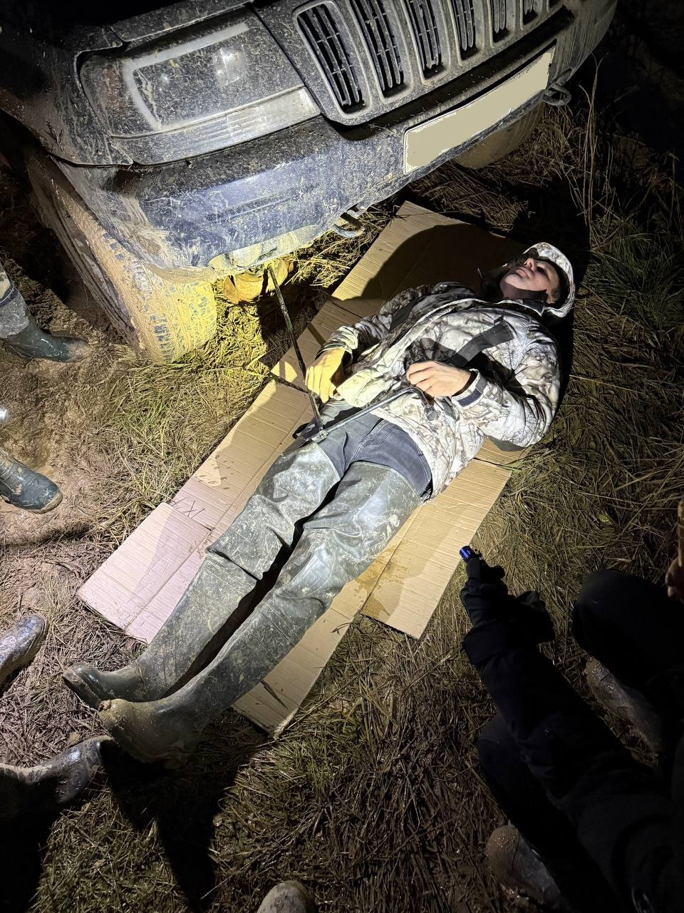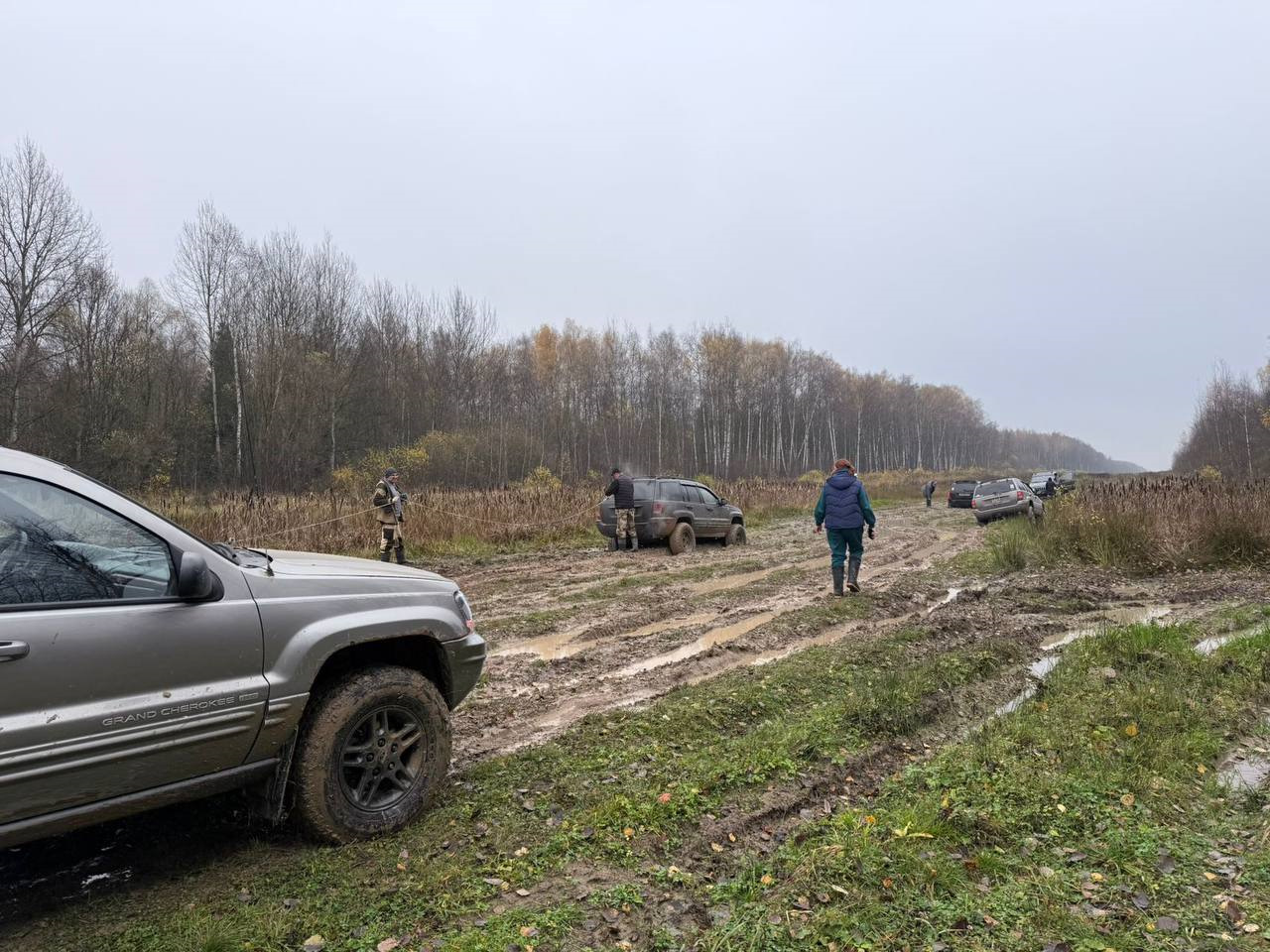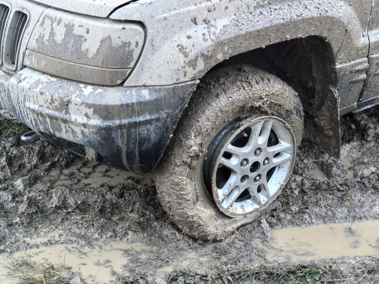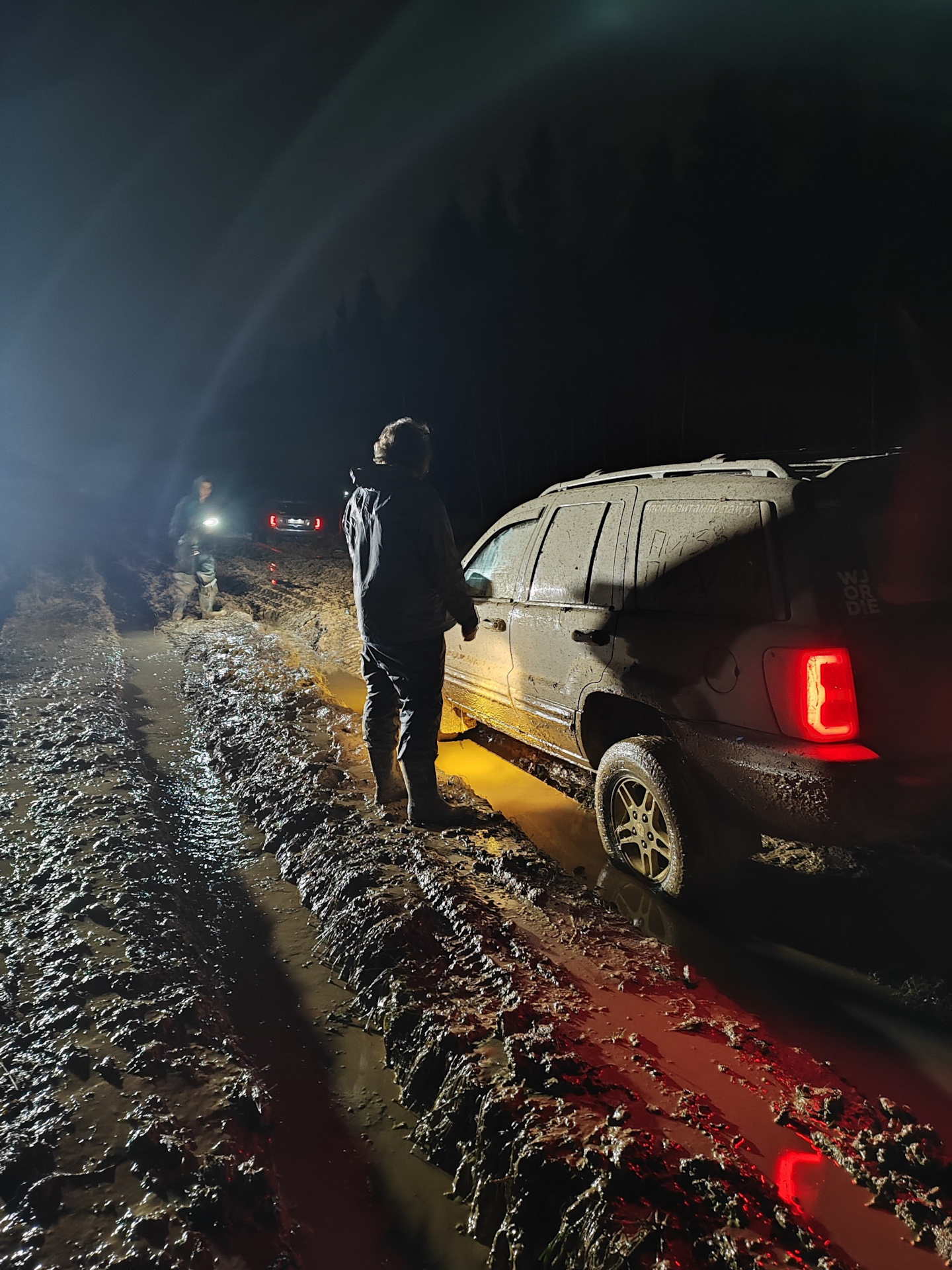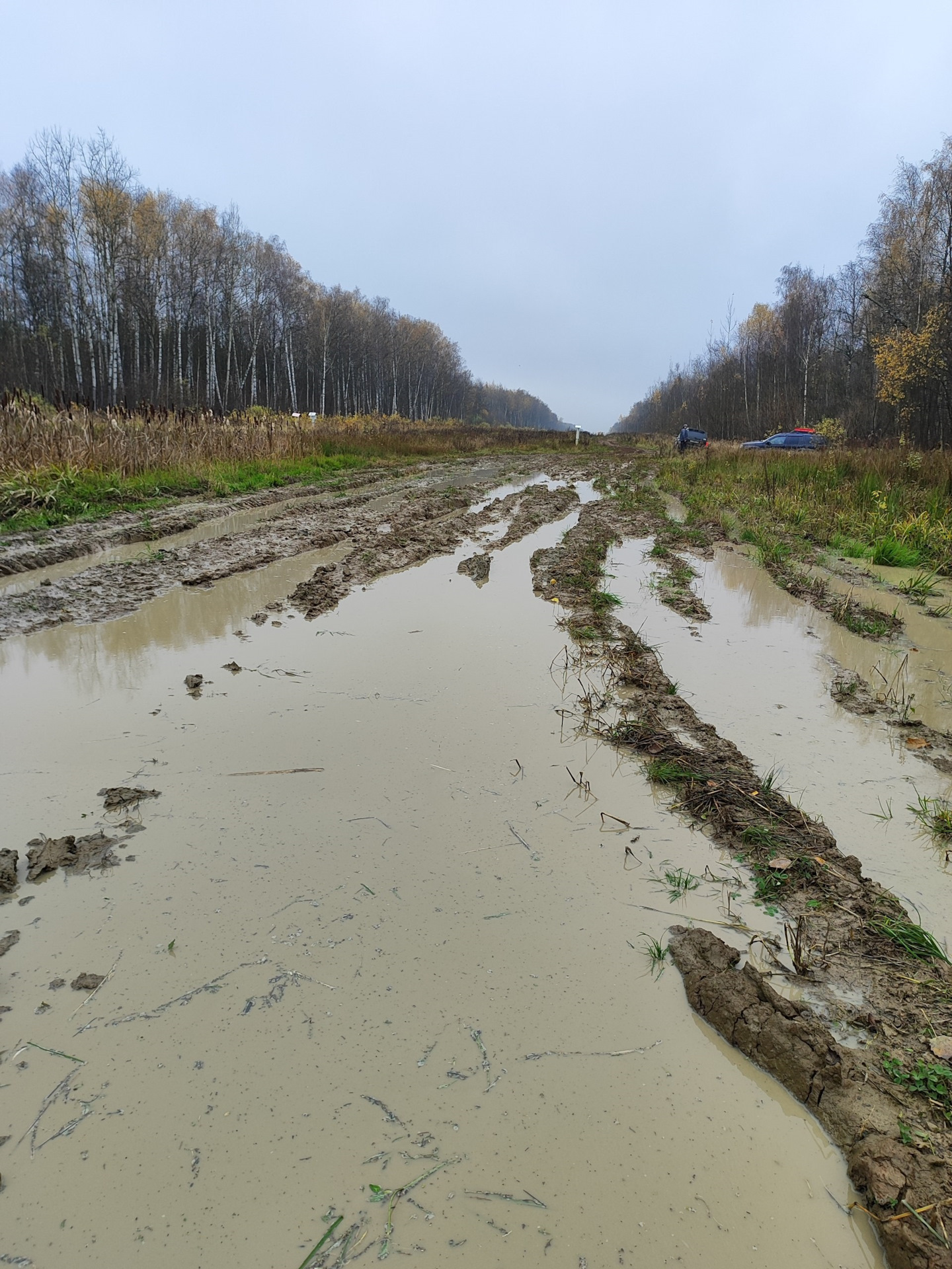 В ночи мне показалось, что да — грязненько, но весьма проходимо даже для тех, кто катается на шоссеечке, ну если что, подтянем тросом — ерунда. Вот только мы не учли тот факт, что после того, как я там был и перед нашим приездом пролил хороший такой дождичек и вот это всё поплыло… Был я там вечером 23 октября.