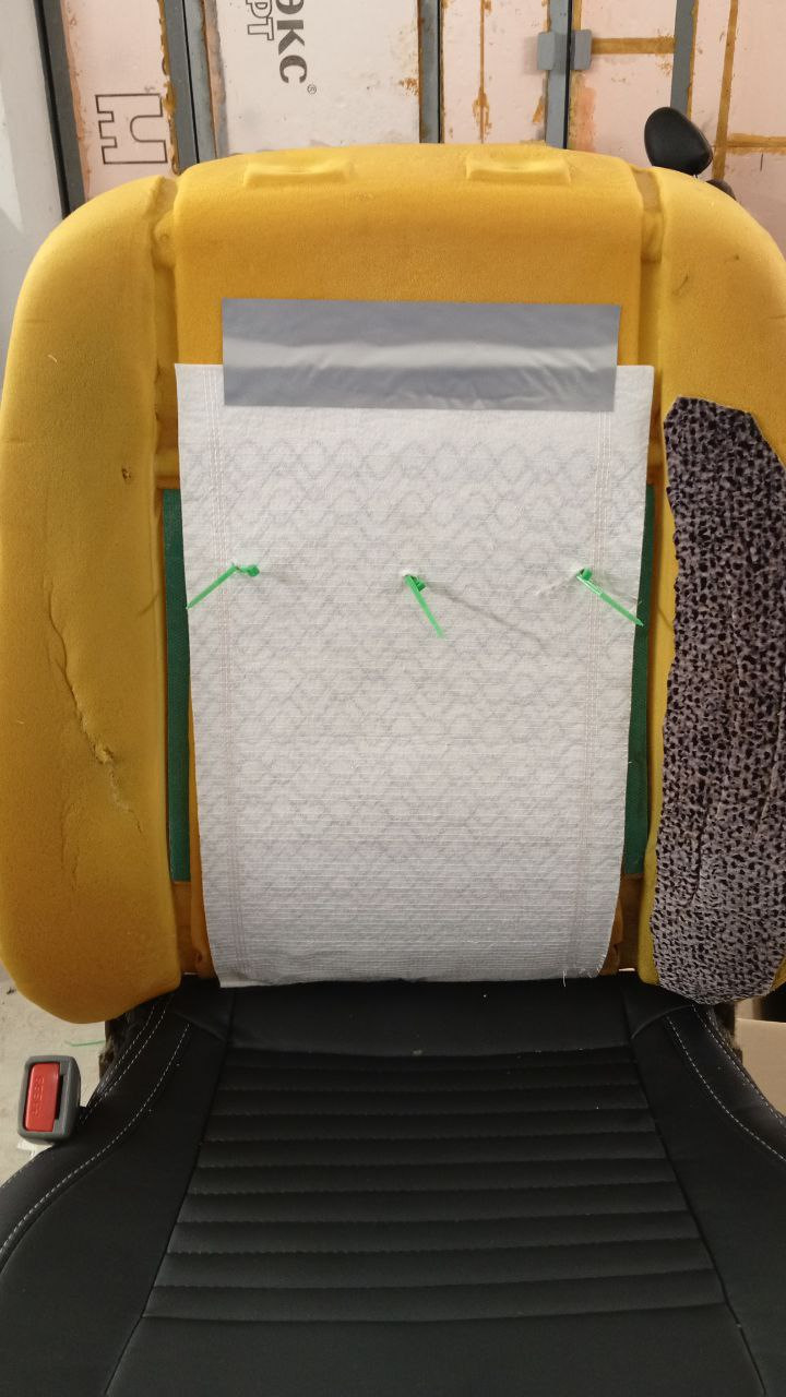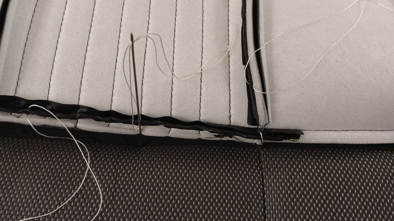 5. Комплект устанавливается поверх штатной обивки салона и точечно утягивается фиксирующими нитями.
