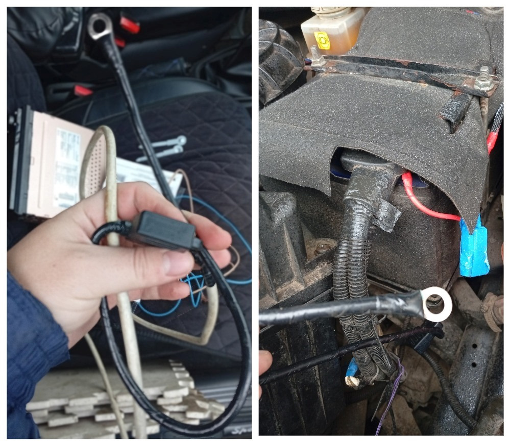 Подключаем питание непосредственно к аккумулятору, защитив плюсовой провод предохранителем номиналом 30 Ампер (располагаем предохранитель как можно ближе к аккумулятору)! Провода сечением не менее 2,5 кв.мм.